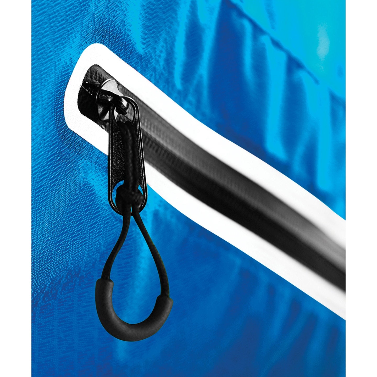 TearAway label for ease of rebranding. Fully lined. Shoe compartment/wet pocket. Wipe clean interior. Reflective accents. Zippered front pocket. Zippered end pocket. External mesh pocket. Detachable adjustable shoulder strap. Padded hand grip.
