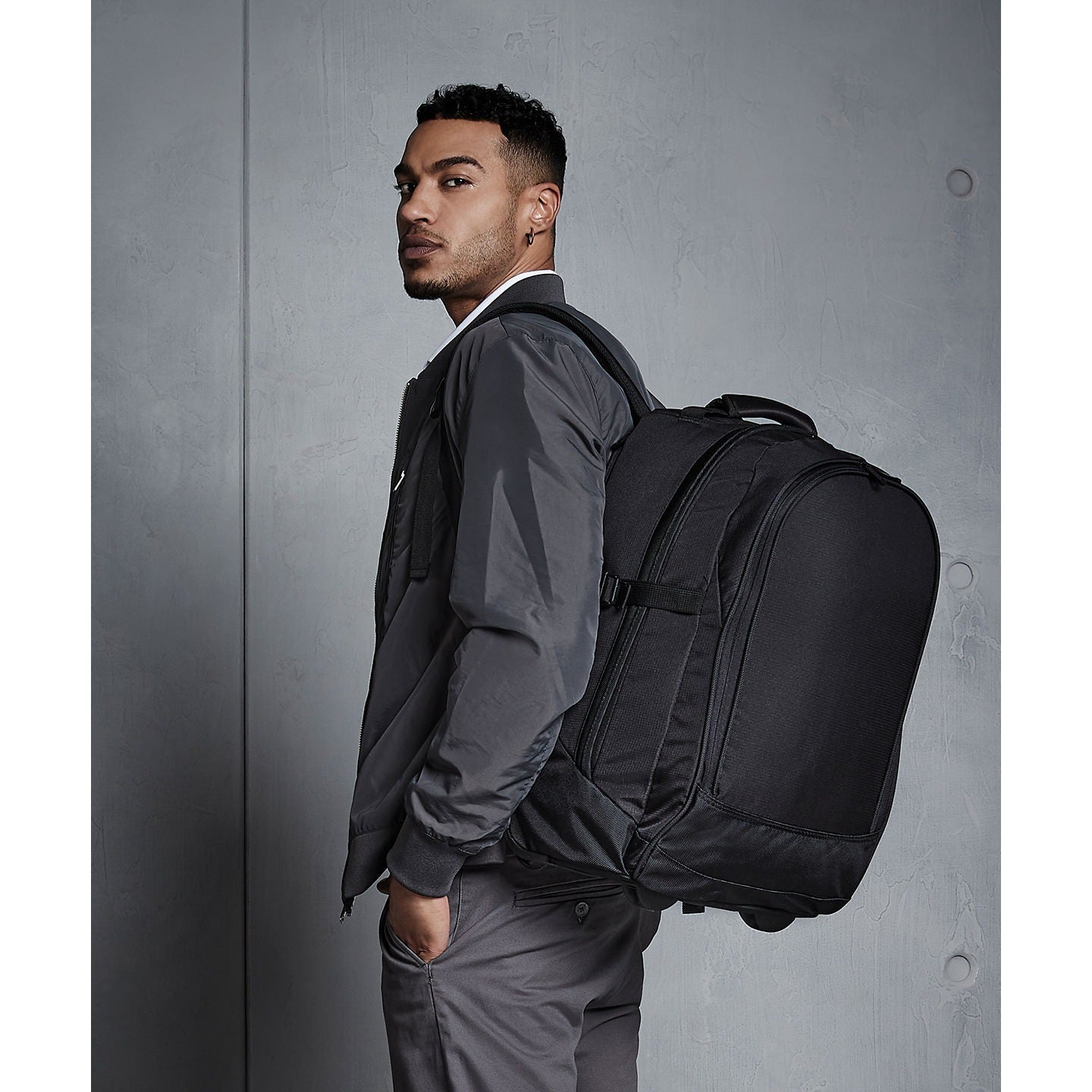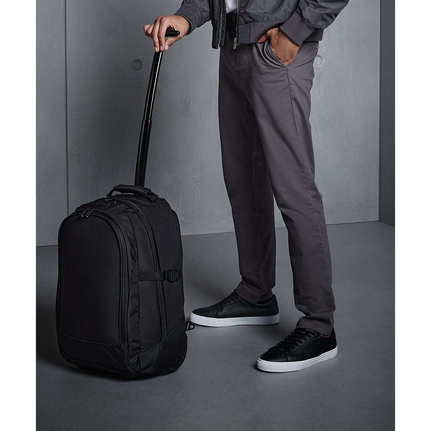 Aircraft cabin compatible. Zippered front pocket, organiser section, large main compartment. Compressions straps. Retractable mono tube locking tow handle. Pack away shoulder straps. Durable integrated skate wheels. Neoprene padded grab handle. Name card holder. Reach certified. SEDEX certified.