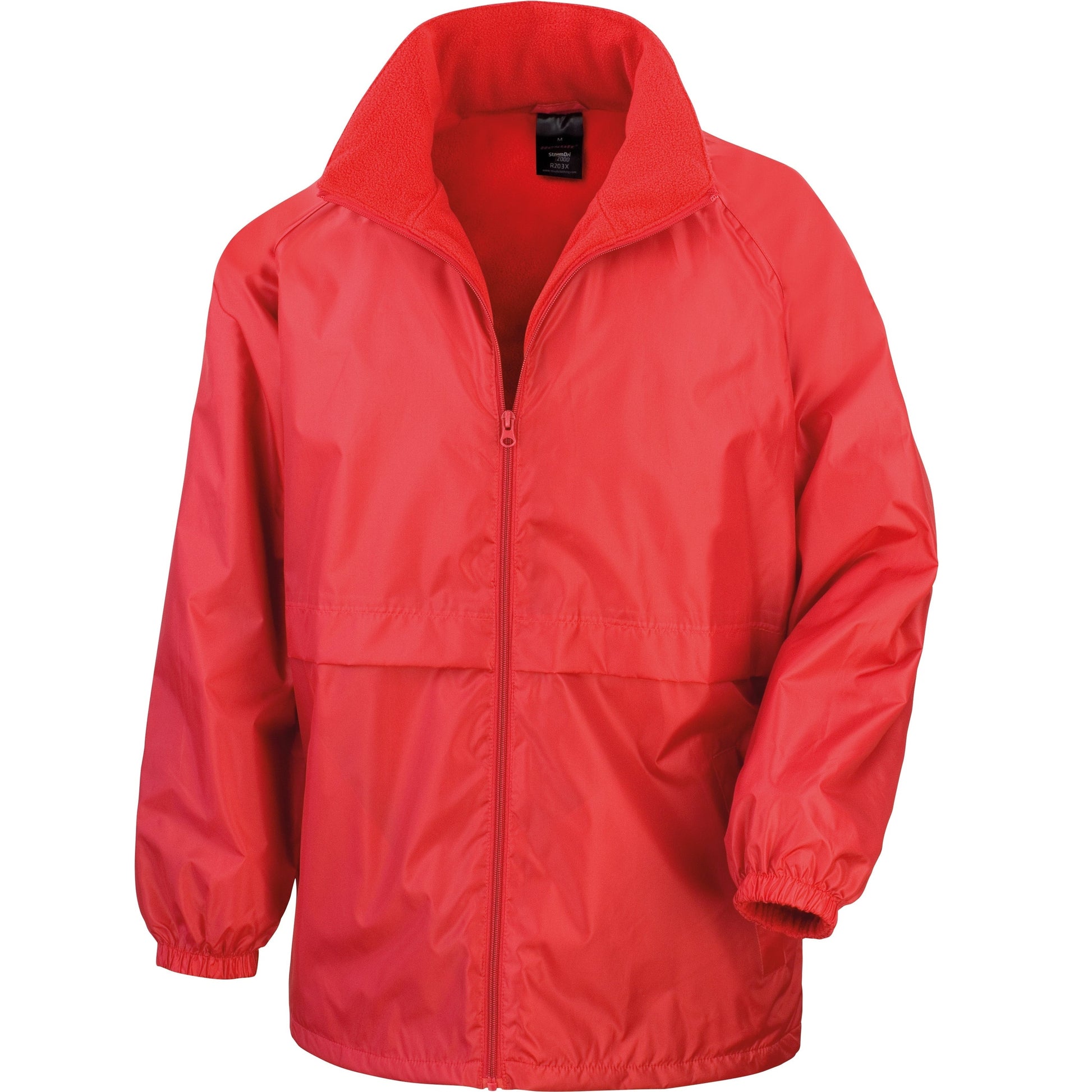 Waterproof 2000mm. Windproof. Waterproof taped seams. Full front zip. Zipped side pockets with cargo retention welts. Fold away waterproof hood. Reflective tape across lower back panel. Elasticated cuffs. Microfleece collar facing. Lightweight year round use. Decorating methods: Embroidery, direct print, transfer print. Decorators access point: lower back hem.