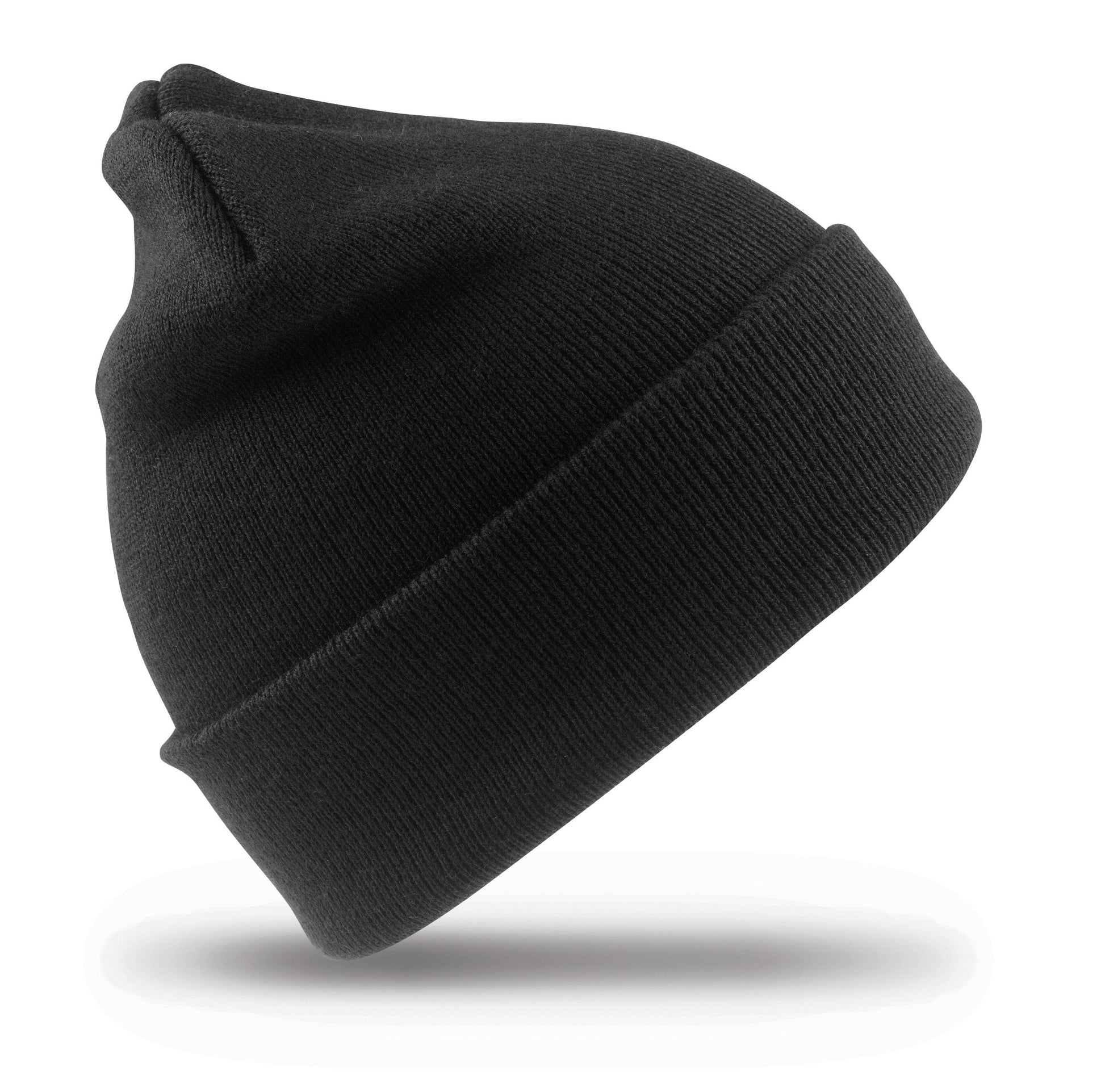 Beanie made from 50% recycled materials with Thinsulate. 3M label sewn outside. Double thickness. Full size style. Deep Cuff. Soft-feel knit. .