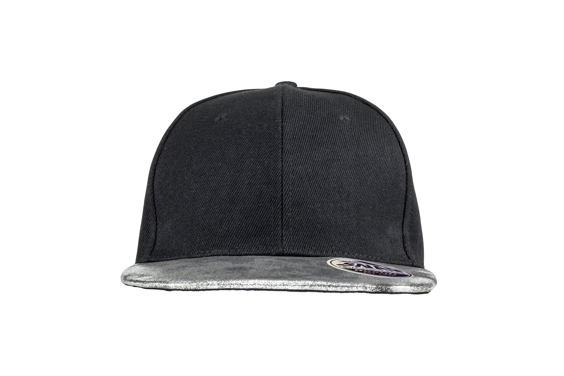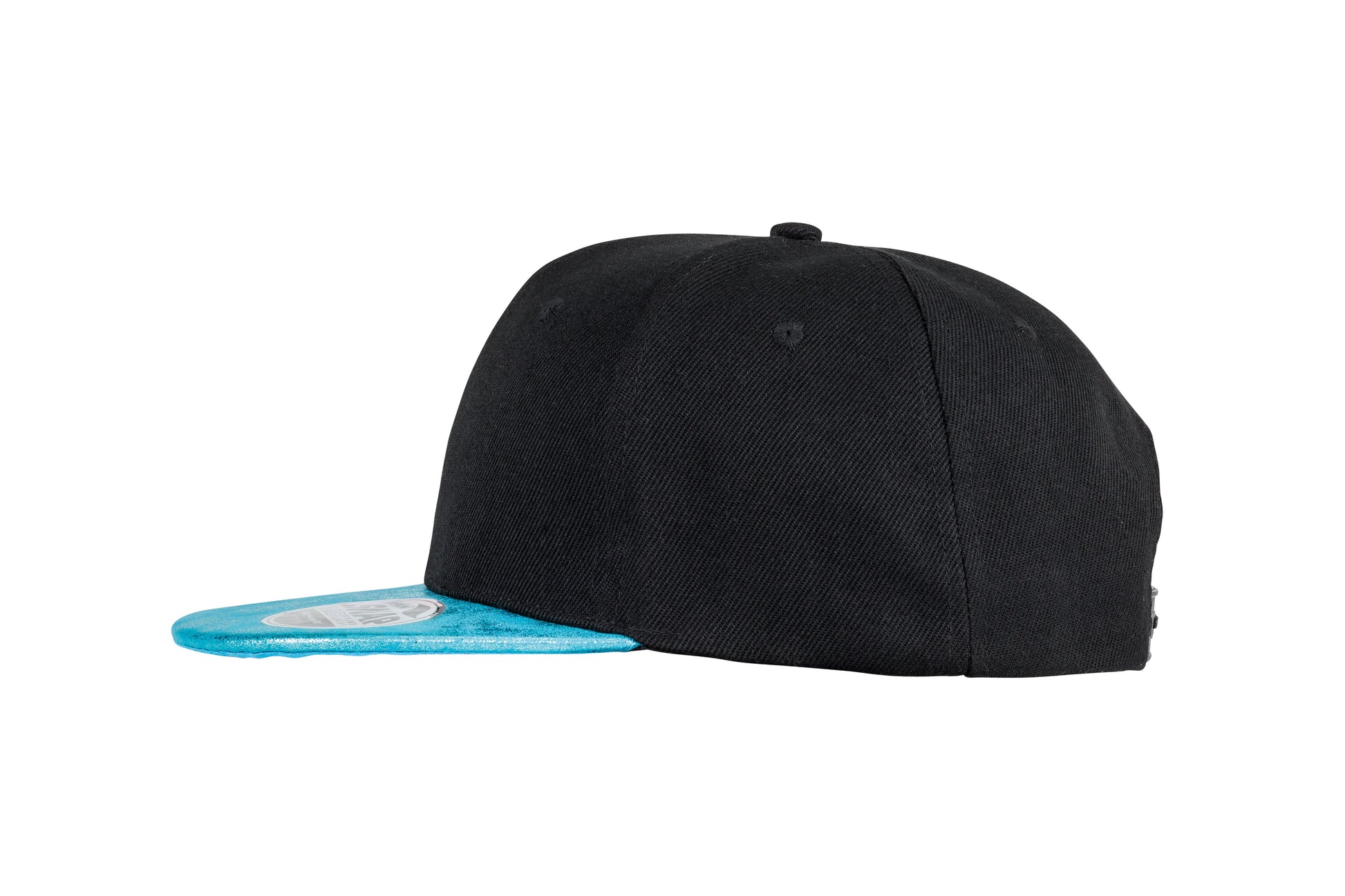 Tear away label. CORE value product. 6 panel. Stitched eyelets. Stiffened front panels. Snapback adjuster. Contrast PU pearl fabric flat peak.