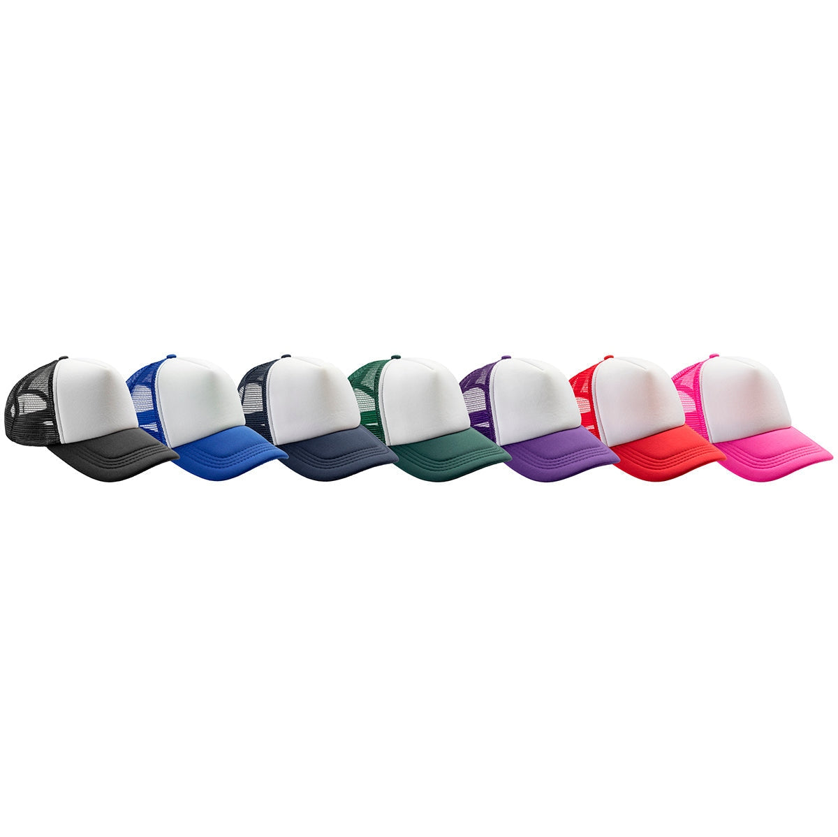 5-panel cap (4 mesh/1 fabric). White front panel with colour contrast mesh and peak. Snapback adjuster. Semi- curved fabric peak made from plastic. Tear-away label.