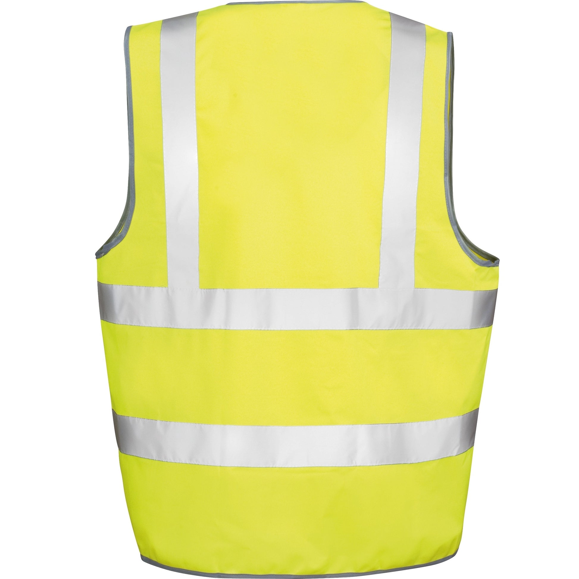 120g/m² 100% Polyester High visibility Class 2 safety vest with 2 bands of reflective tape around torso and one brace over each shoulder. Tear release front fastening for easy access and grey polyester bound edges. Generous in size allowing to be worn as an over garment. EN ISO 20471 + A1:2016 CLASS 2. RIS-3279-TOM ISSUE 2:2019 CLASS 2 (orange). Oeko-Tex certified. Decorating methods: Embroidery, transfer, print.