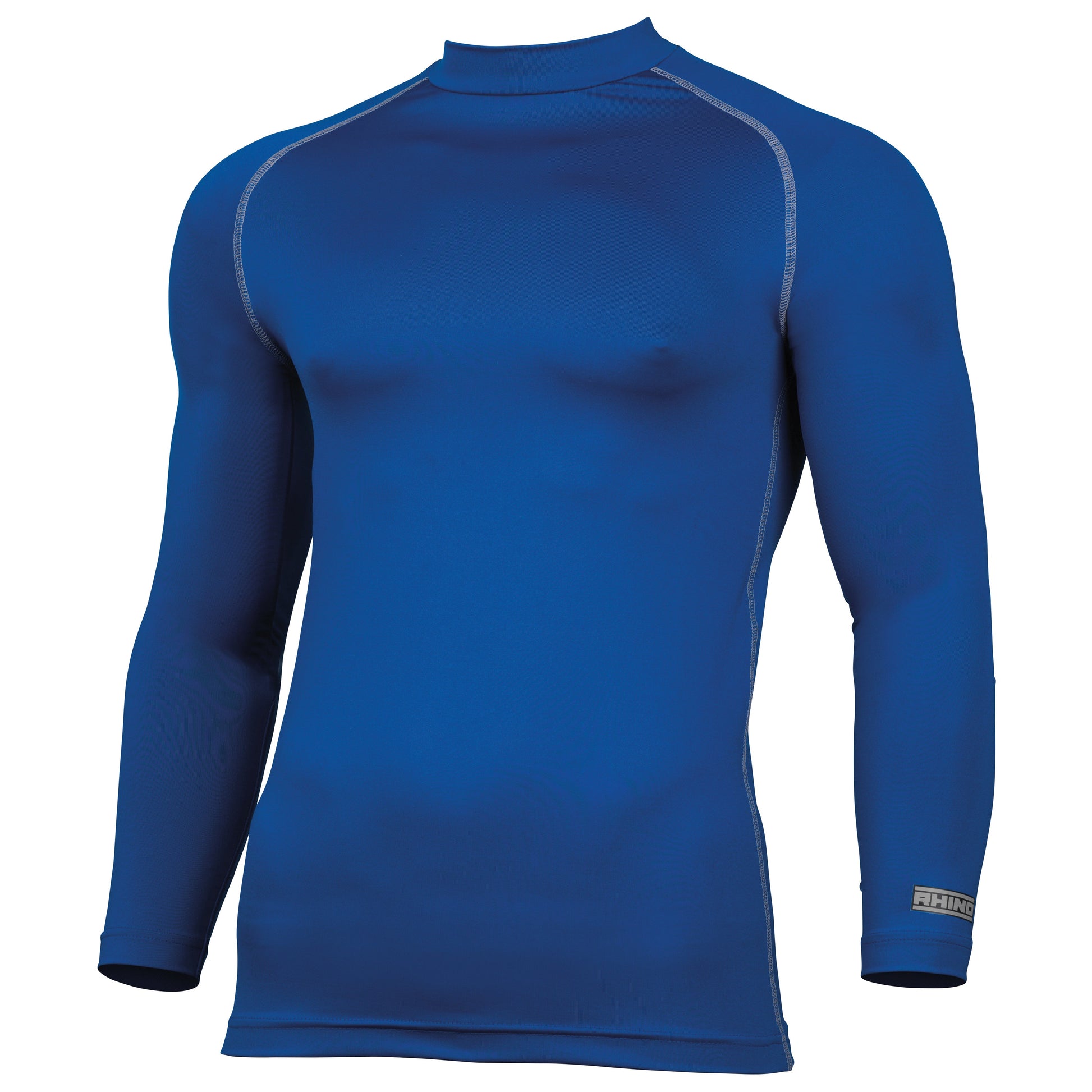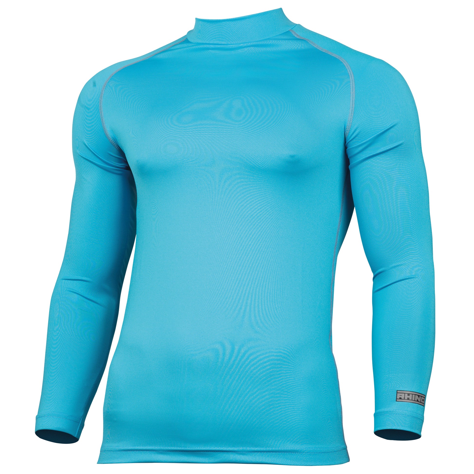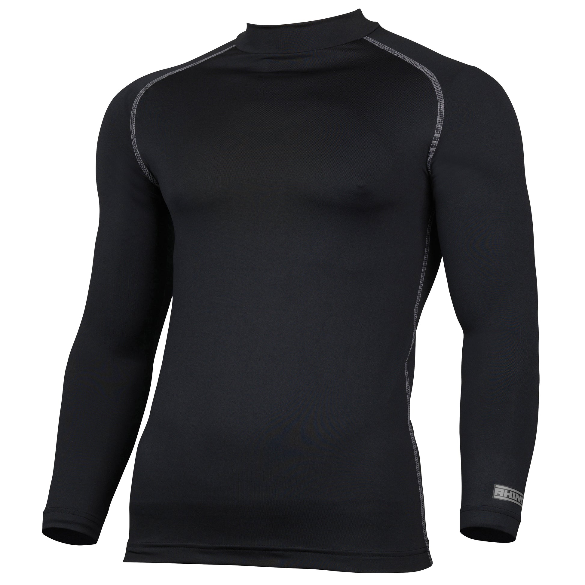 Long sleeve turtleneck. The turtleneck can be personalised with a logo or text. Rhino logo to the rear of the turtleneck. Keeps you warm and dry in cold conditions. Fabric is lightweight, soft, easycare and dries quickly. Fits like a second skin. Regulates temperature of the body. Raglan sleeve design allows increased mobility and a full range of motion. Suitable for all sports (including football, rugby, hockey, golf, cricket, winter sports, cycling and equestrian), and work.