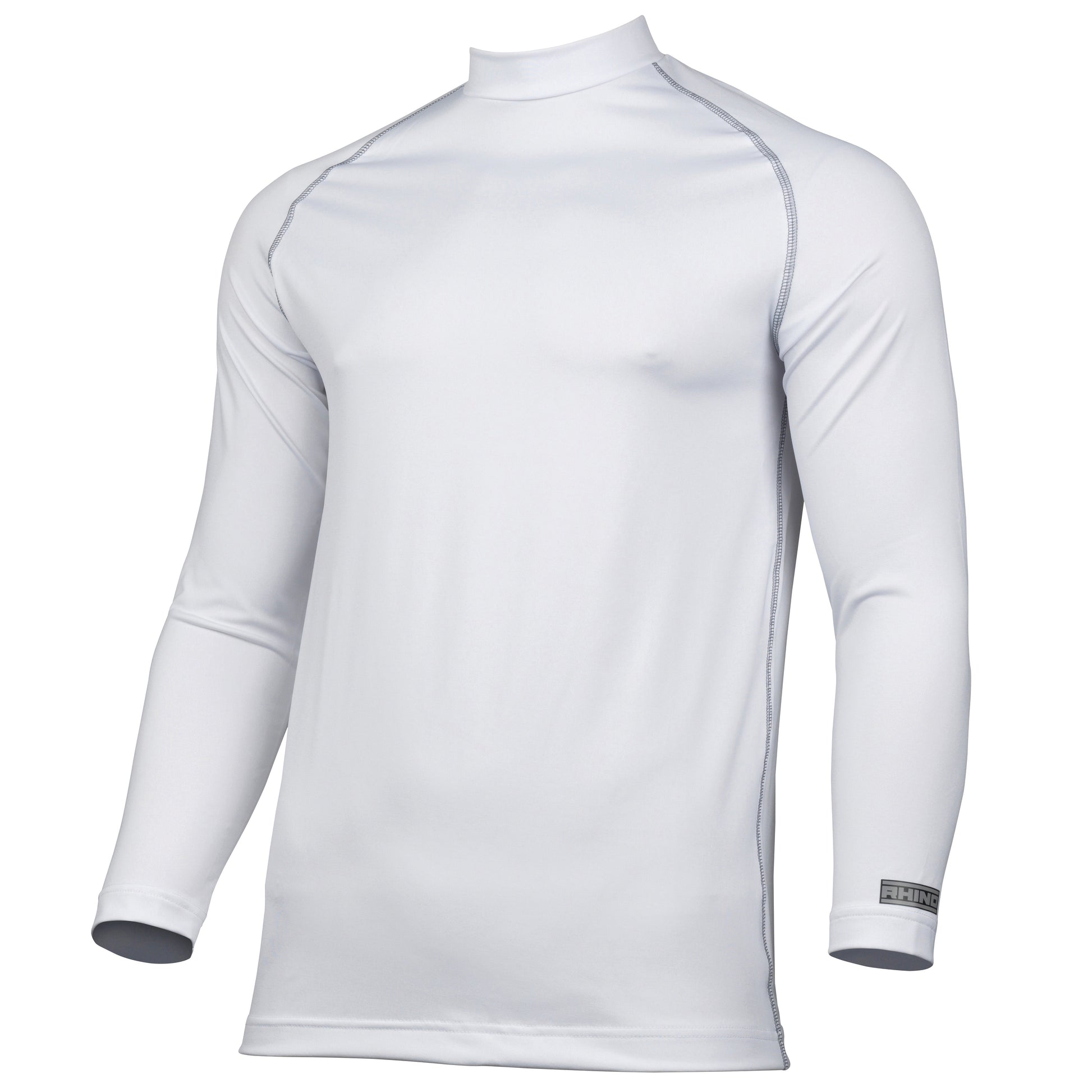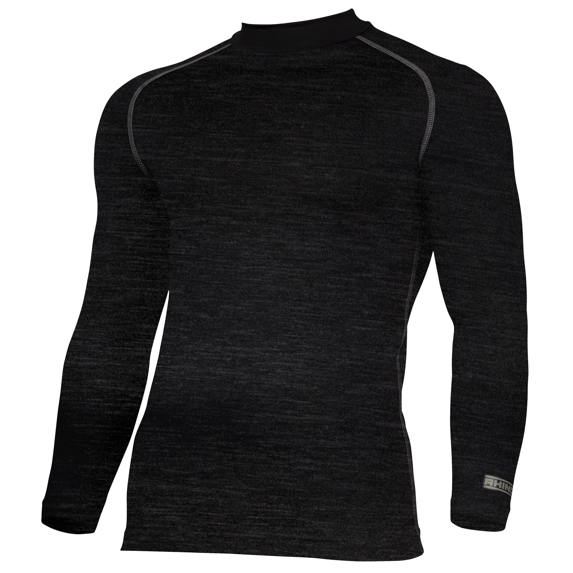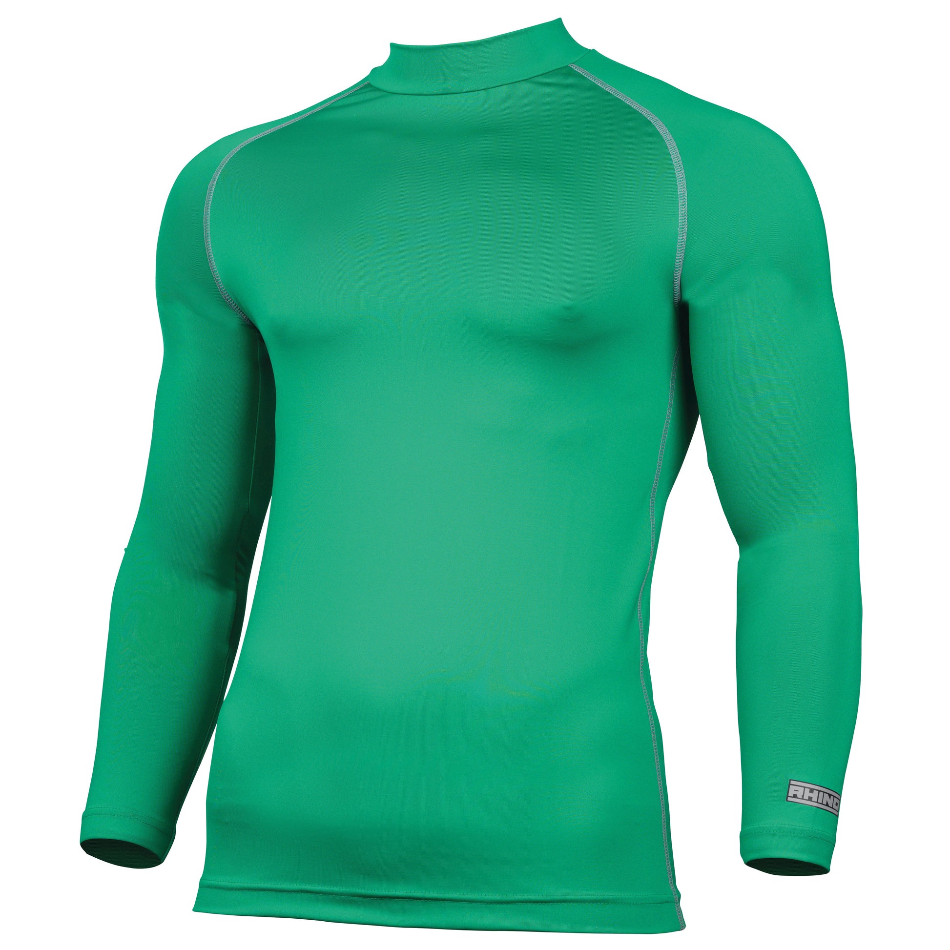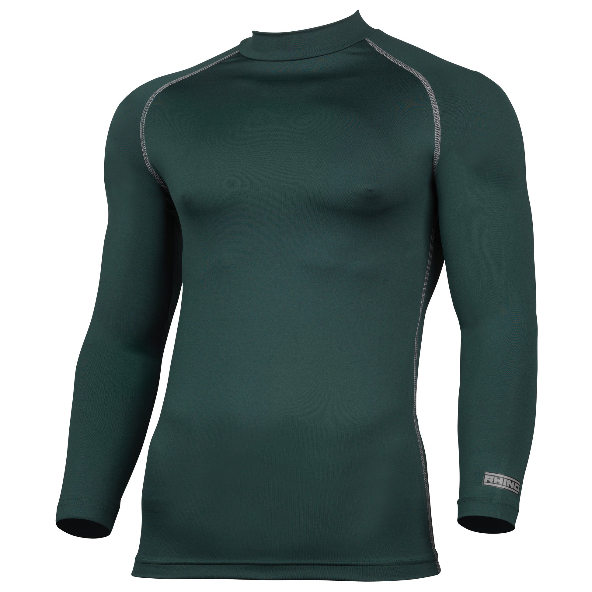 Long sleeve turtleneck. The turtleneck can be personalised with a logo or text. Rhino logo to the rear of the turtleneck. Keeps you warm and dry in cold conditions. Fabric is lightweight, soft, easycare and dries quickly. Fits like a second skin. Regulates temperature of the body. Raglan sleeve design allows increased mobility and a full range of motion. Suitable for all sports (including football, rugby, hockey, golf, cricket, winter sports, cycling and equestrian), and work.
