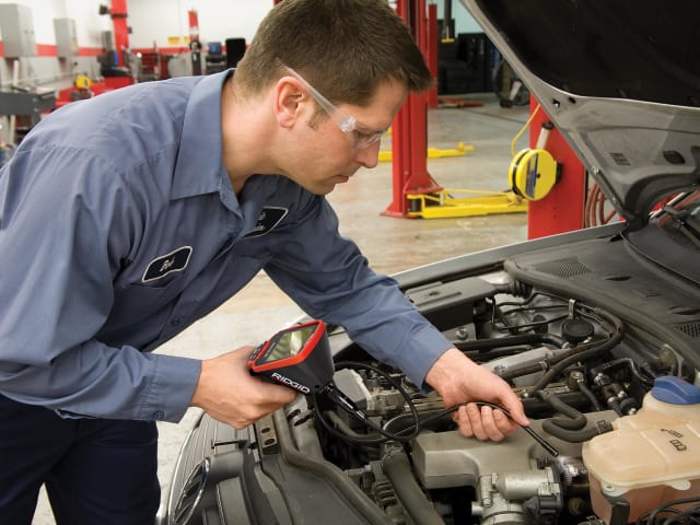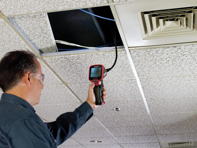 The RIDGID CA-150 Micro SeeSnake® Hand Held Inspection Camera can capture up to 20 still images during inspections to playback on screen later. The rugged 17mm aluminium camera head combined with a one-handed pistol grip design makes this tool ideal for the most demanding environments.