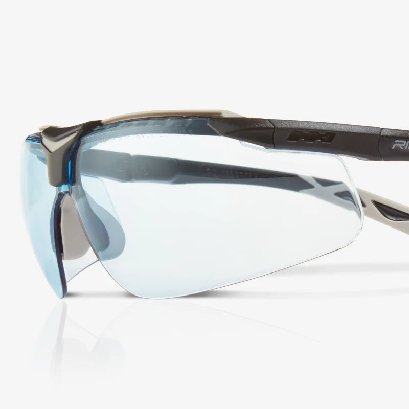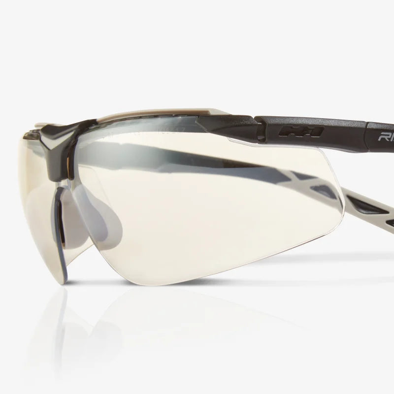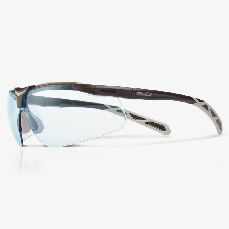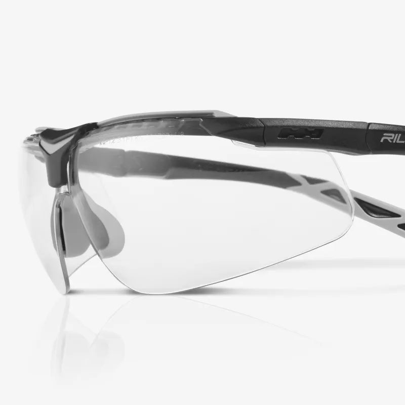 - Co-injected bi-colour thermoplastic rubber temples provide a secure fit