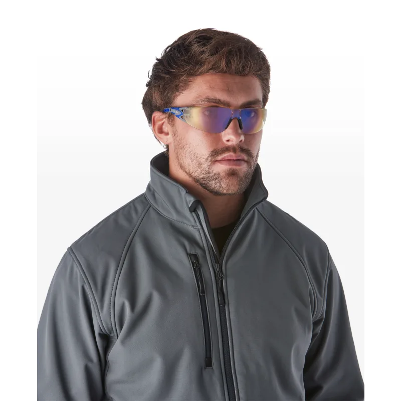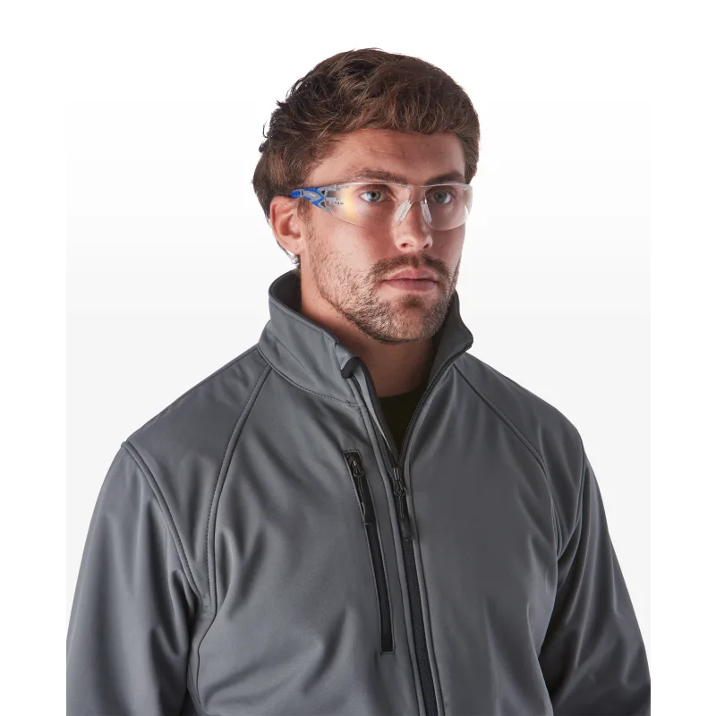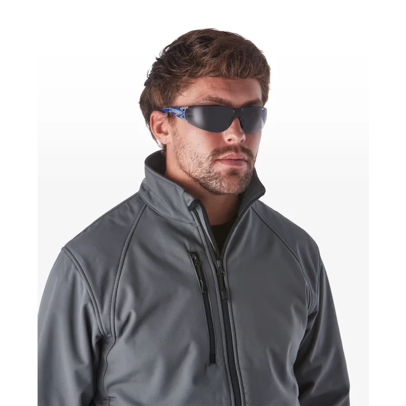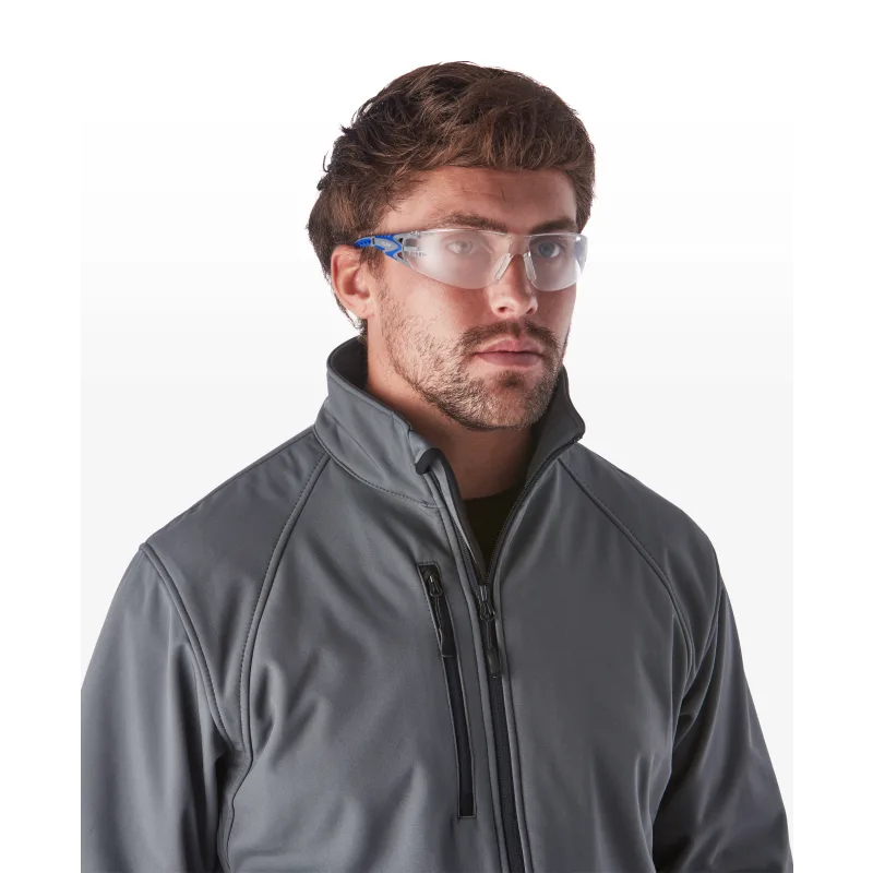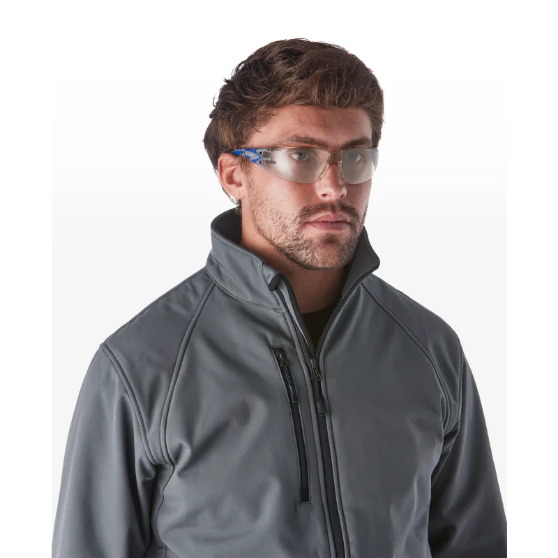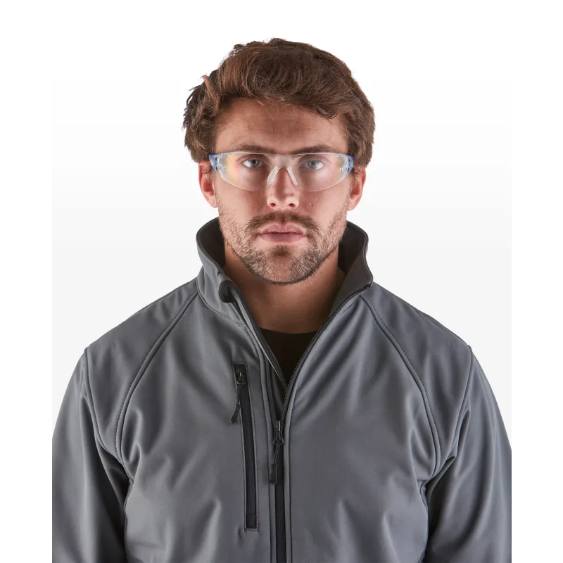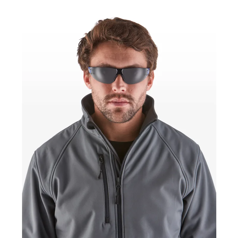 Riley Stream Evo, a lightweight sports-style safety spectacle with a secure & comfortable fit that comes in a range of lens types & coatings. The frameless design features an adjustable rubber nose bridge & flexible temple tips. Its wraparound polycarbonate lens offers a wide field of vision & lateral protection & is treated with our Tecton 4 anti-scratch anti-fog coating. The metal-free construction enhances safety, particularly during electrical work, while the slim temples ensure comfort with ear defenders. Ideal for manufacturing, engineering, DIY, construction, & warehouse & logistics industries. Recommended for electrical engineering, maintenance & servicing, & fabrication. Very lightweight at an impressive just 23g, & comes with a microfiber storage pouch. Stay protected with Riley Stream.