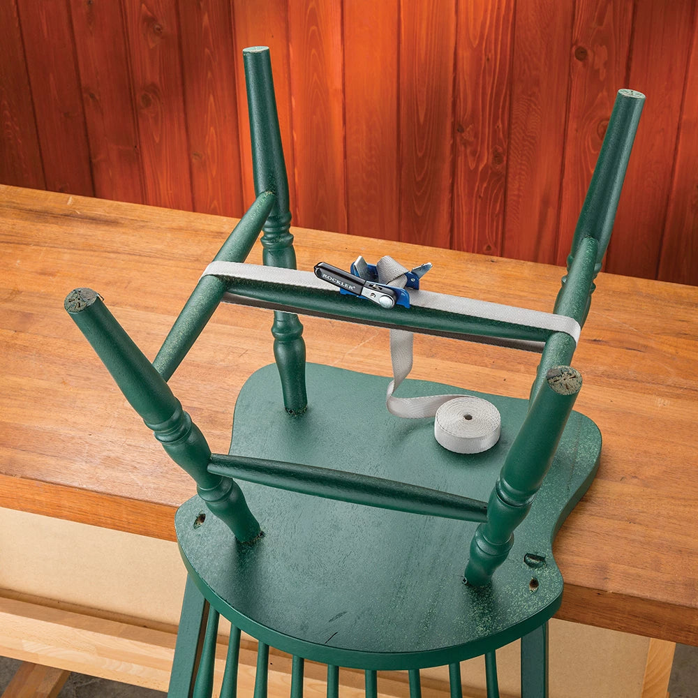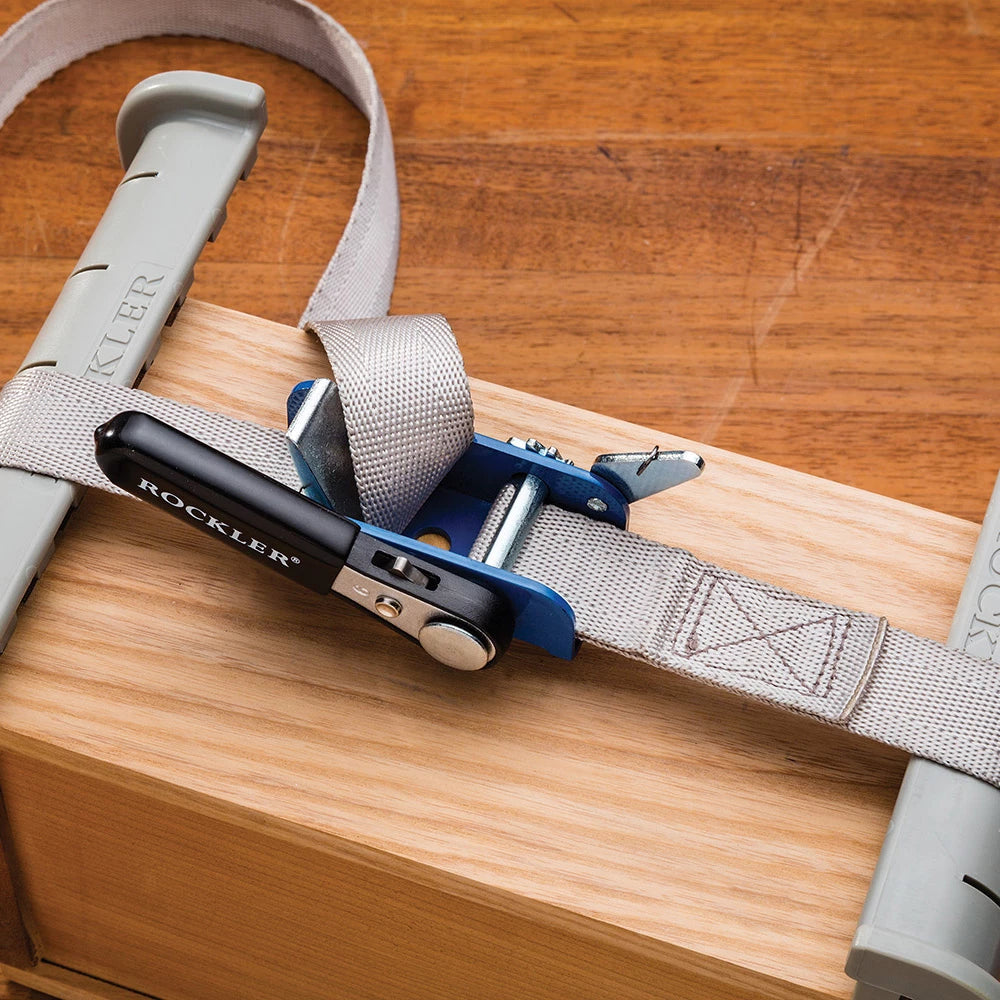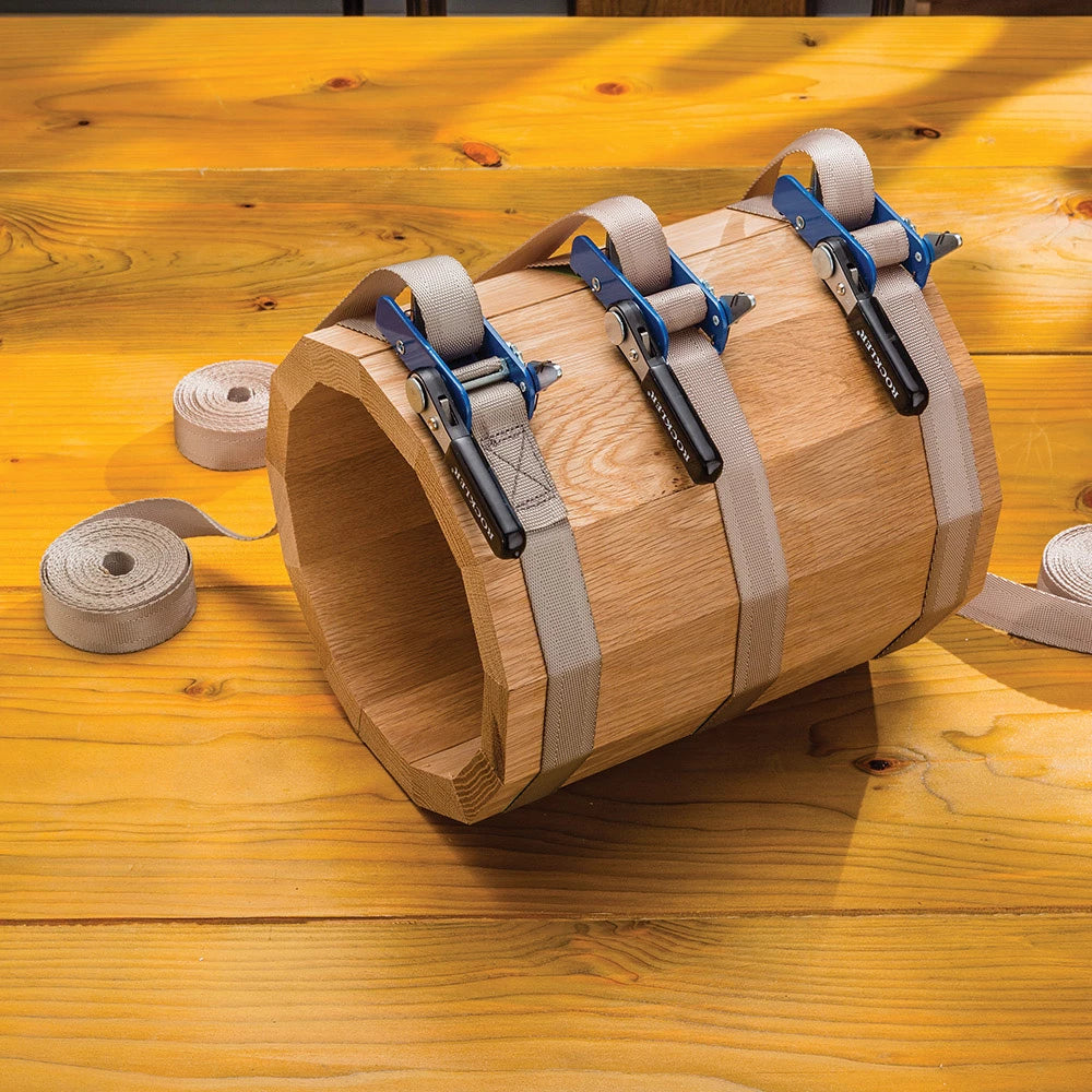 Reinforced webbing with herringbone weave for strength and durability. Nylon material does not stretch under tension. Ratcheting handle is permanently attached to prevent loss. Strap is stitched to ratchet post and improved clamp mechanism further cuts chance of slippage. For use when inward pressure must be exerted to prevent joining surfaces from sliding against each other. Band dimensions W x L: 25mm x 4.58m (1" x 15').