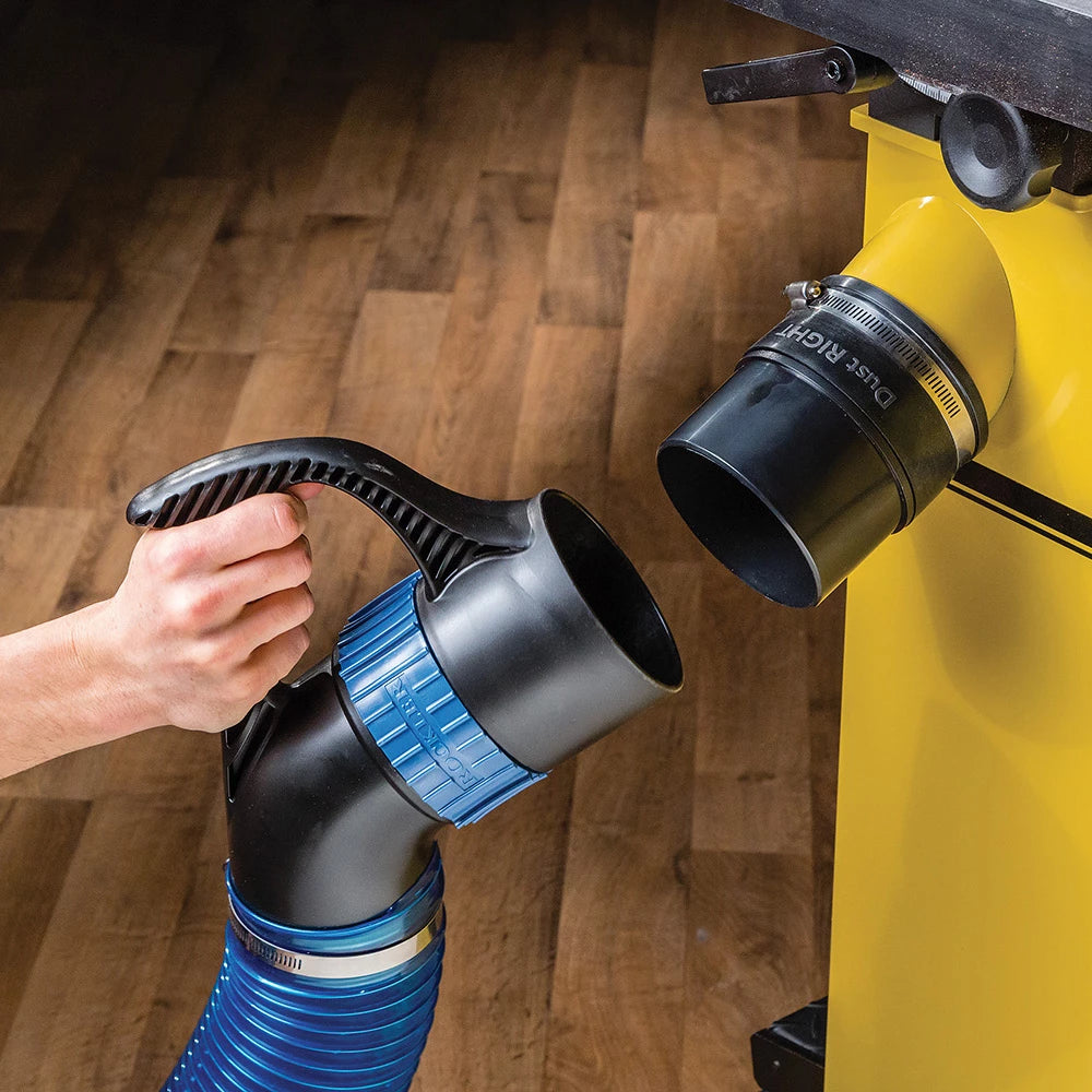 Flexible rubber boot on one side guarantees tight connection and allows slight variations in the size of the tools dust port. Suitable for connection to dust collectors. Includes two ports and two metal hose clamps. Connects any 102mm (4") dust port tool with 102mm (4") hose.