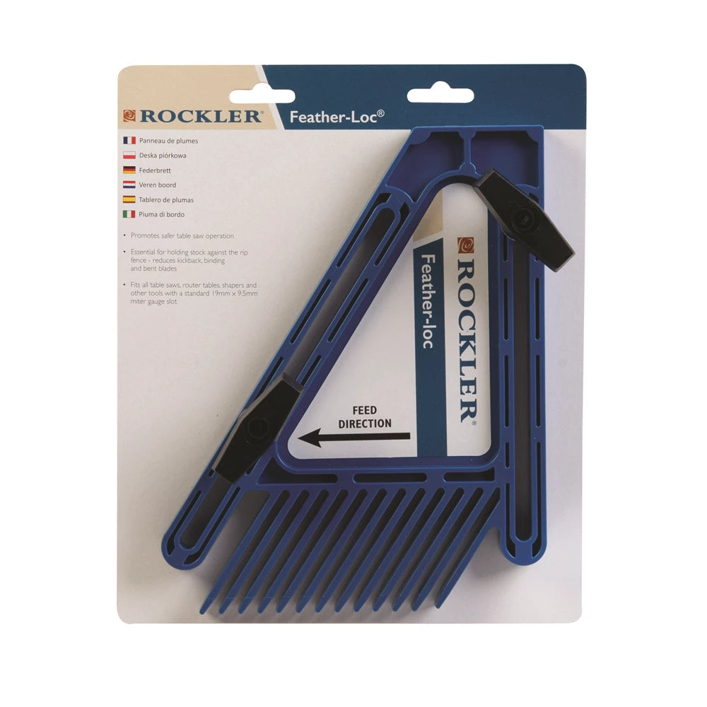Protects hands and helps prevent kickback, binding and bent blades. Use on table saws to keep long stock tight against the rip fence, or attach to fence to prevent workpiece from lifting during cutting. Features integral fittings for T-slots and includes Mitre Slot Adaptor for tables and fences with standard 3/8" x 3/4" slots. Built-in set-up feather provides easy tension setting.