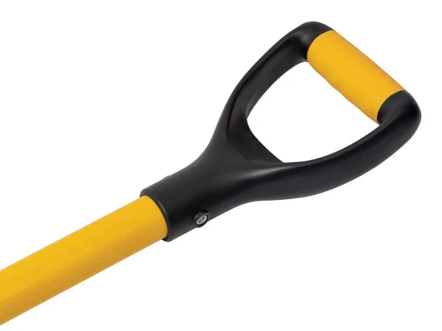 Built to last, it is manufactured from heavy-duty, carbon steel with a corrosion-resistant, tumble lacquered finish. With a tubular fibreglass shaft for reduced overall weight and fitted with a soft grip, D-shaped handle for comfort in use. Treads on the blade allow for increased pressure to be applied with reduced risk of slippage. The Power Ring socket, steel-reinforced plug, provides a stronger blade to handle connection.