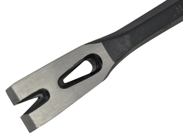 The integral nail puller can be used to aid the removal of embedded nails. It can also be used as a double handed wrecking chisel where great vertical downward pressure is required.