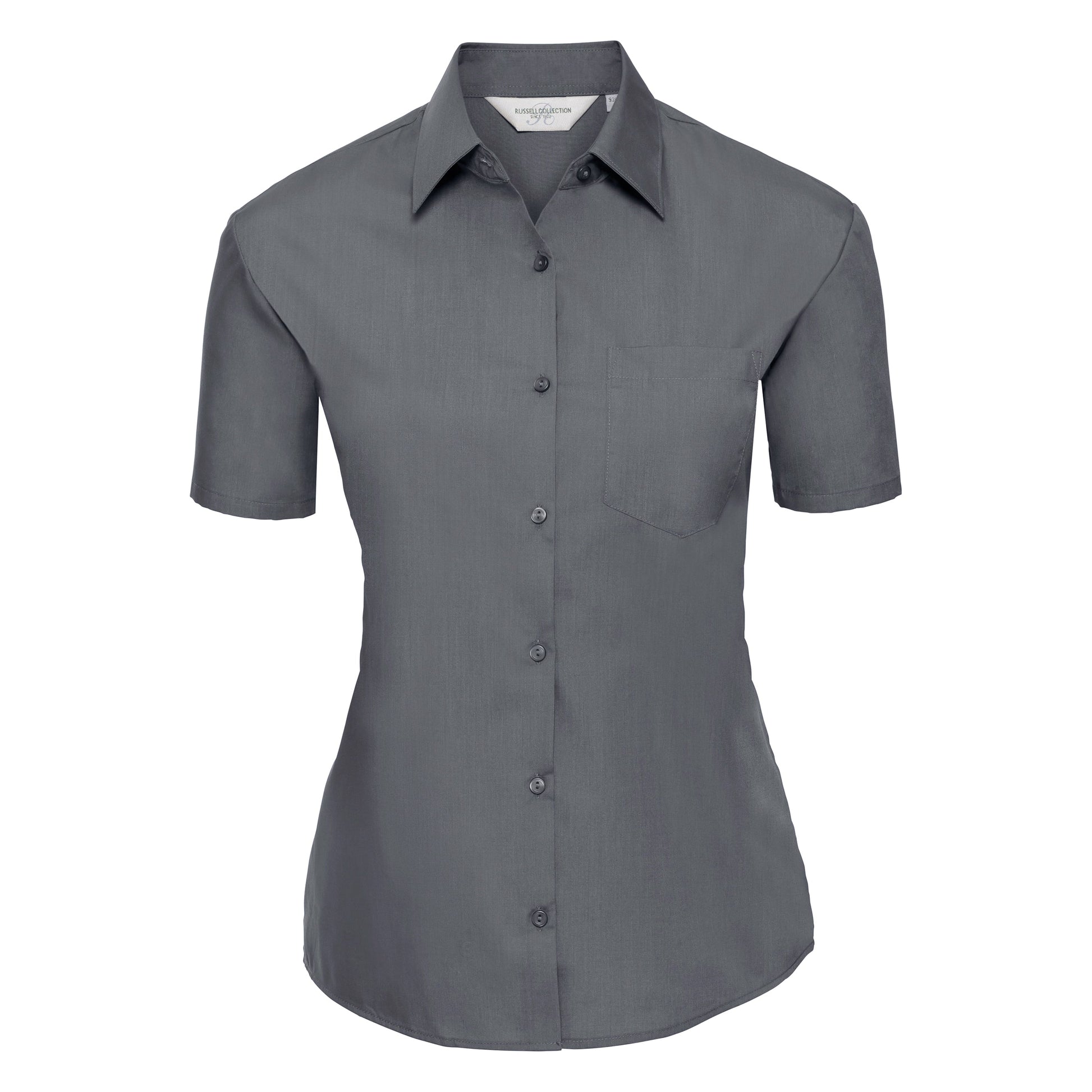 Russell Collection Women's Short Sleeve Polycotton Easycare Poplin Shirt
