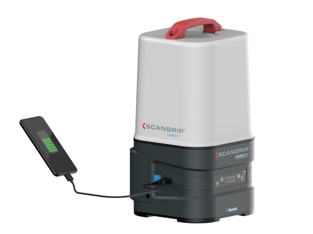 It has a compact design with a carrying handle, makes it extremely handy and easy to move around. It is also supplied with a hook for flexible positioning and can be mounted directly on the SCANGRIP TRIPOD (SOLD SEPARATELY). Dust and waterproof, IP65, and supplied with a built-in power bank with USB outlet to charge mobile devices. Comes as a Bare Unit.
