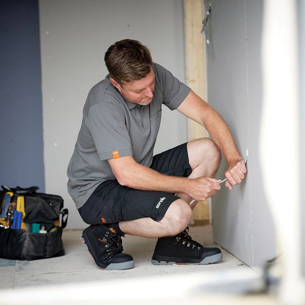 Naturally breathable and sustainably sourced cotton-rich fabric. Longer length to prevent riding up when working. Ribbed collar with button placket. Blank chest for printing or embroidery. 50% sustainably sourced cotton and 50% polyester, 220gsm.
