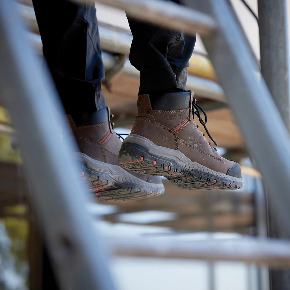 Non-metallic high spec S3 safety boots with water-resistant nubuck leather upper. Composite toe and midplate provide lightweight, flexible protection, and the underfoot shock absorption and Poron® sock provide extra cushioning. Durable moulded toe protects against scuffs. Safety rating: S3 SRC HRO.