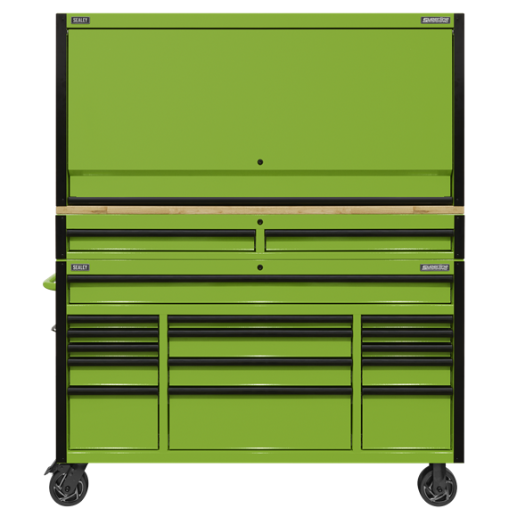 Sealey 15 Drawer 1549mm Mobile Trolley with Wooden Worktop and Hutch and 2 Drawer Riser