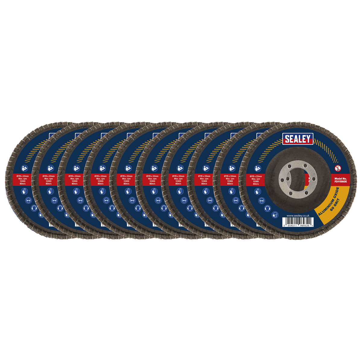 Sealey 60Grit Flap Discs Aluminium Oxide Ø115mm Ø22mm Bore - Pack of 10