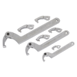 • Hook and pin interchangeable hinged arms with three wrenches covering sizes 19-121mm. Pin sizes Ø4-8mm.