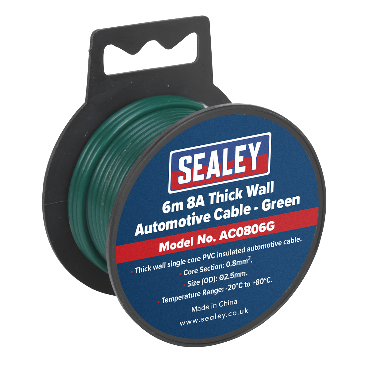 Sealey Automotive Cable Thick Wall 8A 6m Green