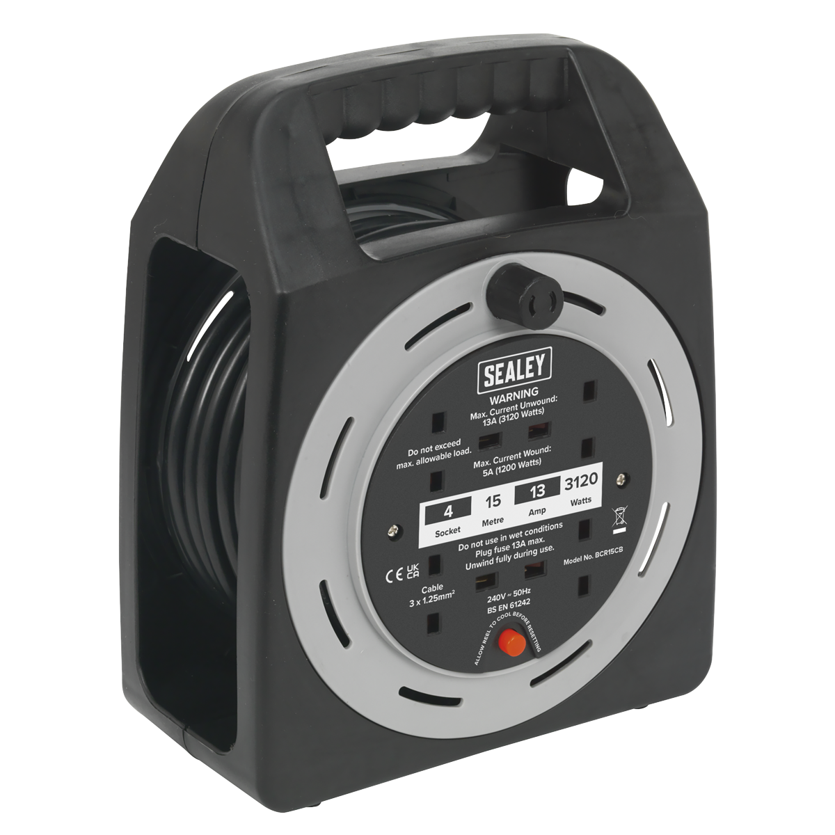 Sealey Cable Reel Box Type 15m 4 x 230V 1.25mm² Thermal Trip