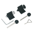 • Kit includes crankshaft locking tools (oval and round gears), plus camshaft and tensioner locking pins.