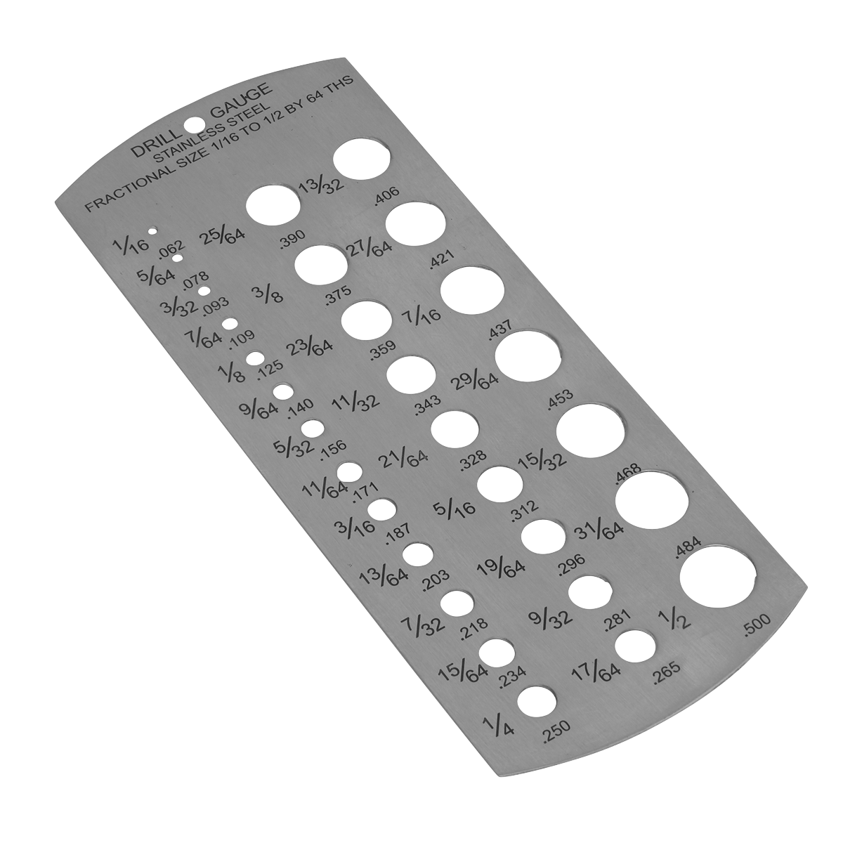 • Stainless steel drill gauge.