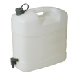 • 20L Polyethylene fluid container with attached screw cap and tap for easy fluid control.