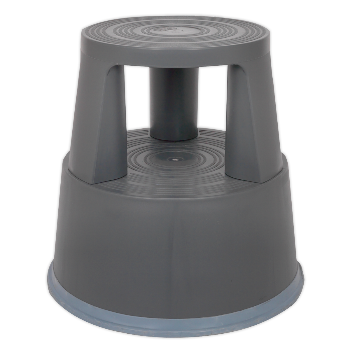 • Three spring loaded wheels allow step to glide over floor, yet sit down firmly on rubber stops when load is applied.