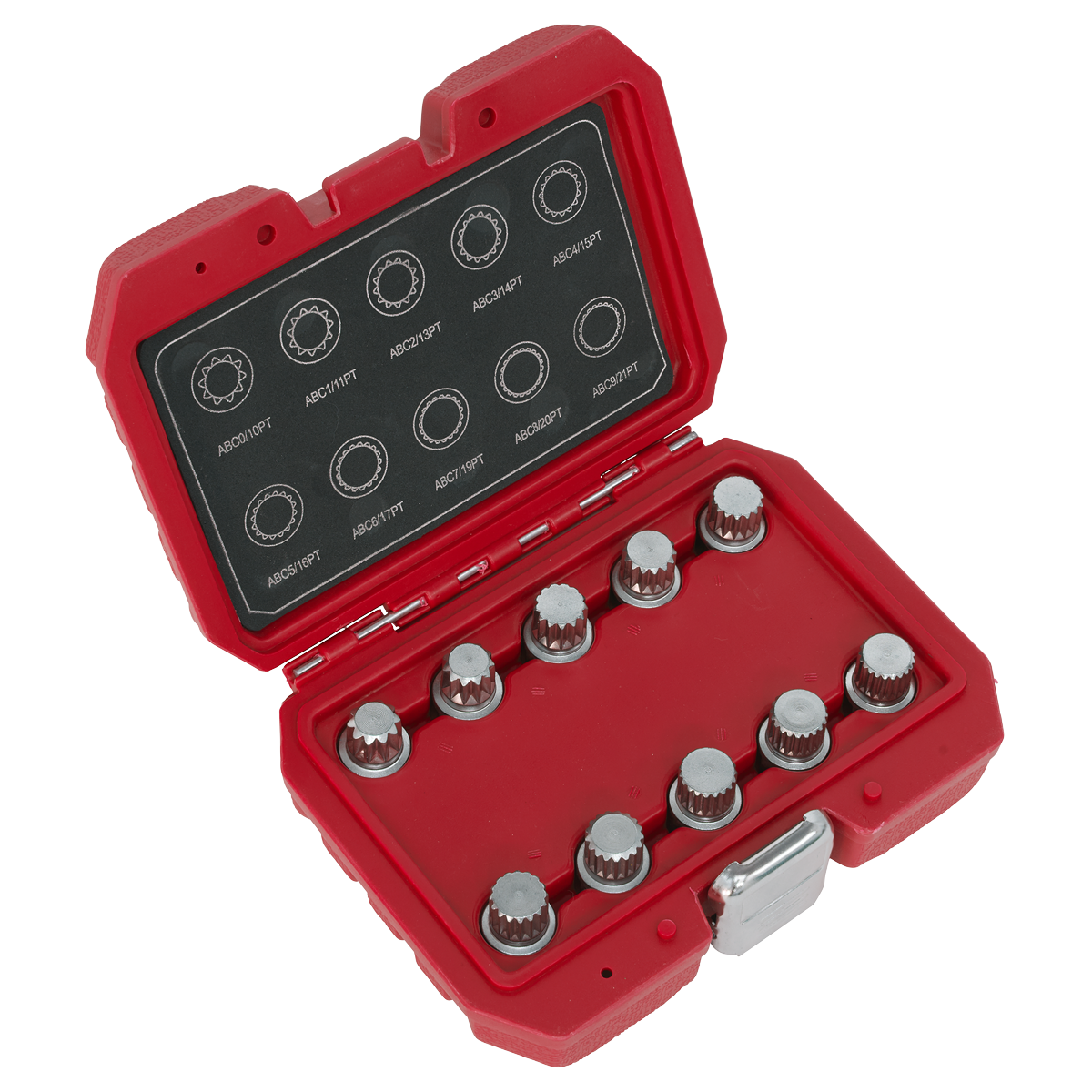• Set of 10 locking keys for the removal of security splined locking wheel nuts on VW vehicles.