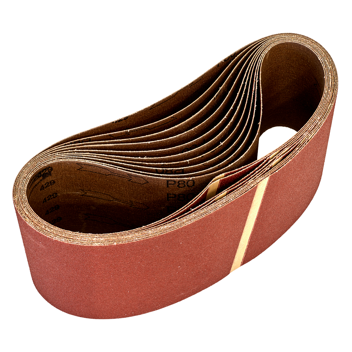 • Aluminium oxide resin bonded sanding belt.