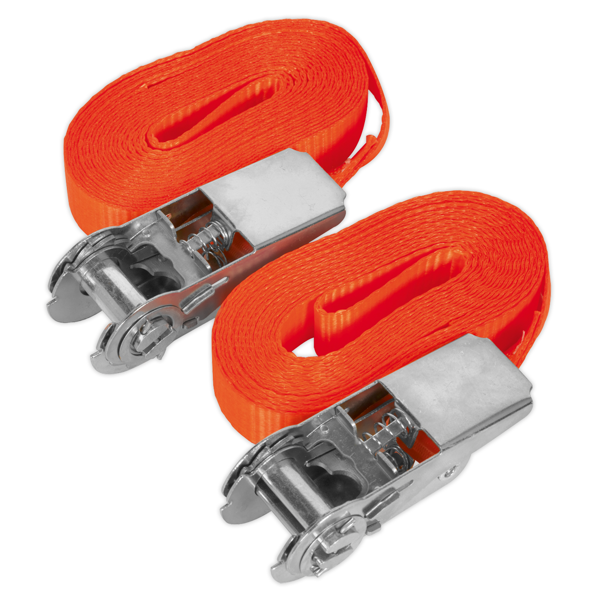 Sealey Self-Securing Ratchet Straps 25mm x 4.5m 800kg Breaking Strength - Pair