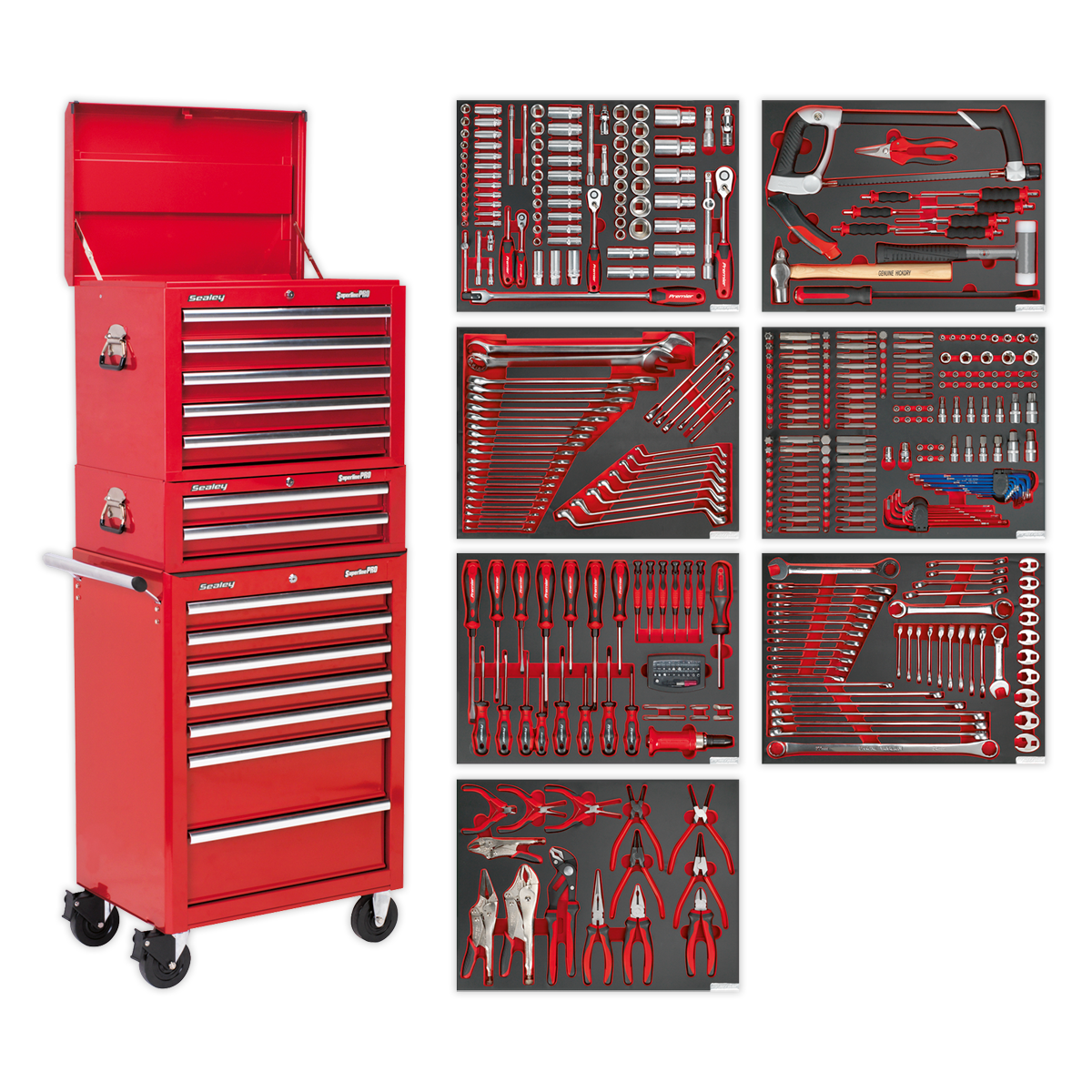 Sealey Tool Chest Combination 14 Drawer with Ball-Bearing Slides - Red & 446pc Tool Kit