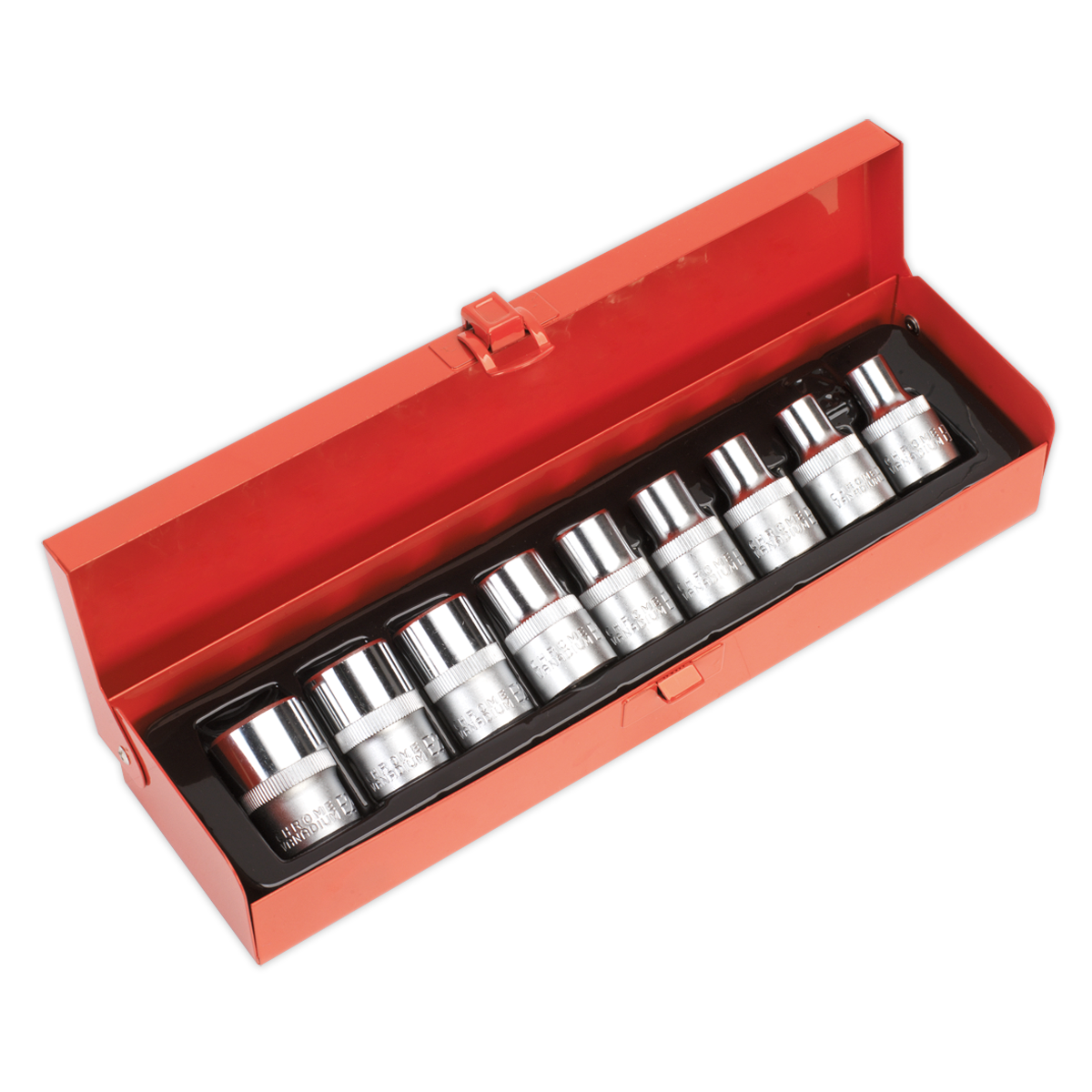 • Chrome Vanadium steel sockets with 1/2"Sq drive.