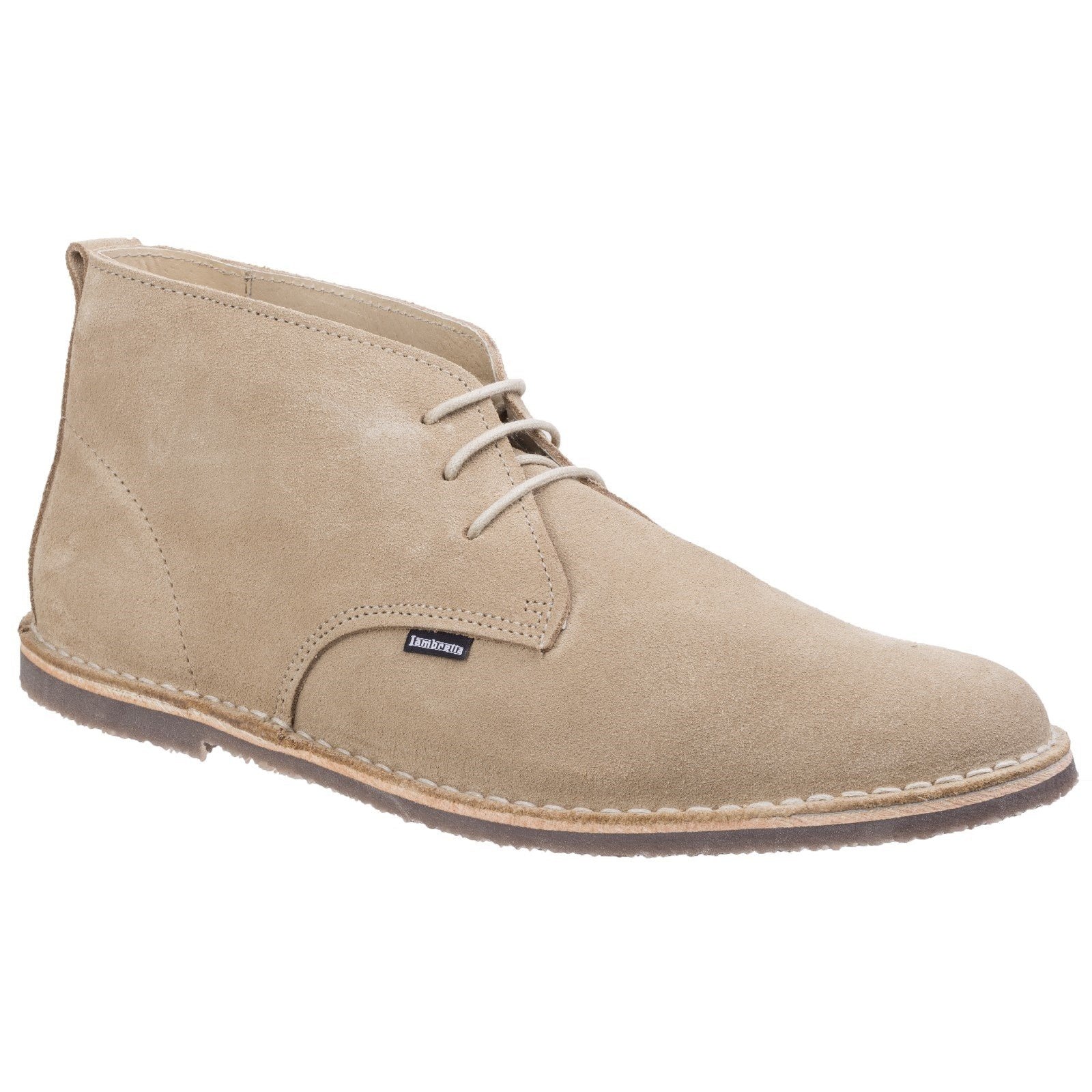 3 Eyelet Stitch Down Desert Boot. Suede Upper With Lambretta Branding Tag. Lambretta Branded Hardwearing Outsole.