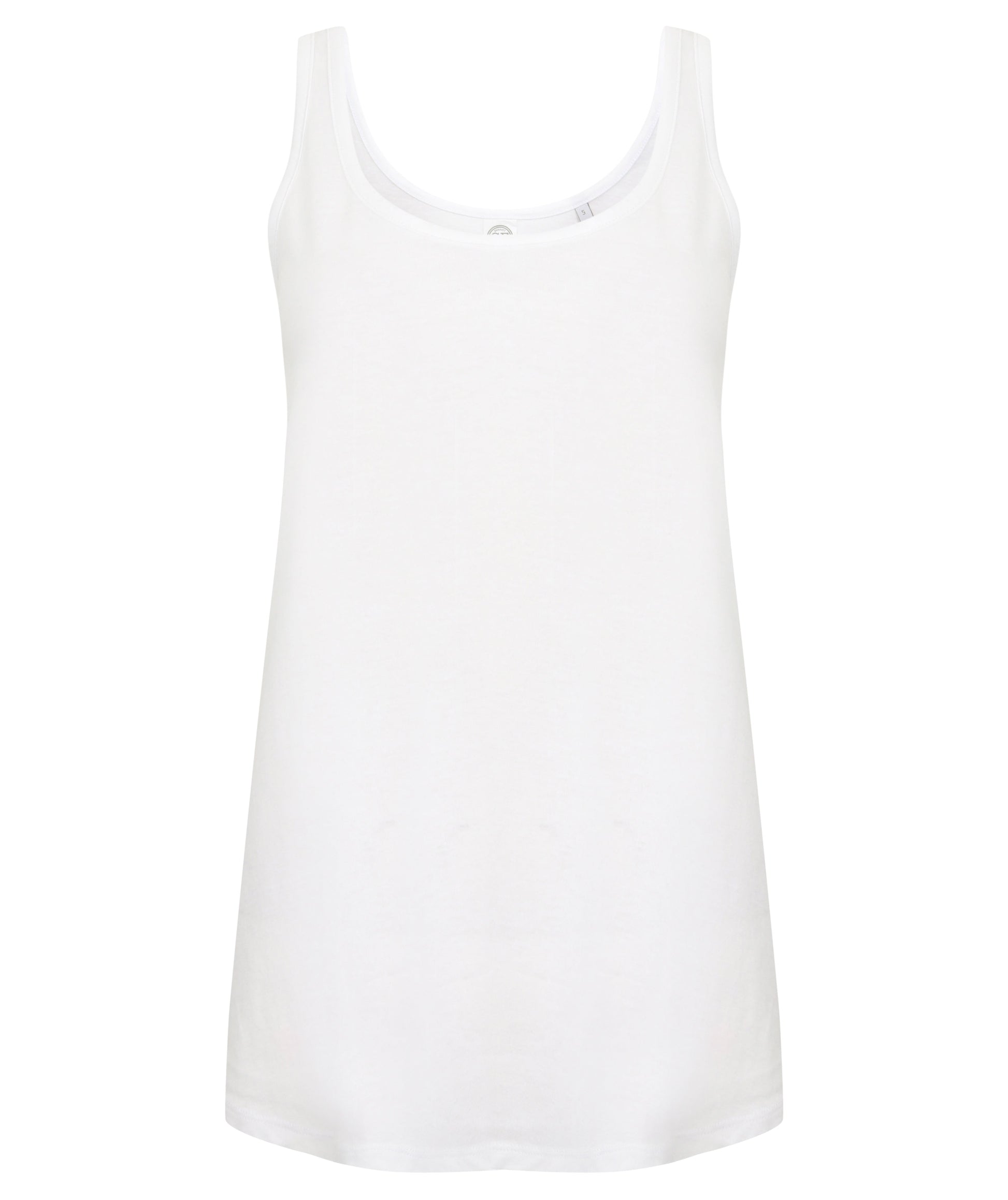 Skinnifit doesn't mean all skinny-fitting garments. This slounge vest has a cool relaxed fit and drape; perfect with leggings, jeans and work-out gear. The scooped neck front and back, and curved hems, ensure a super-flattering shape.