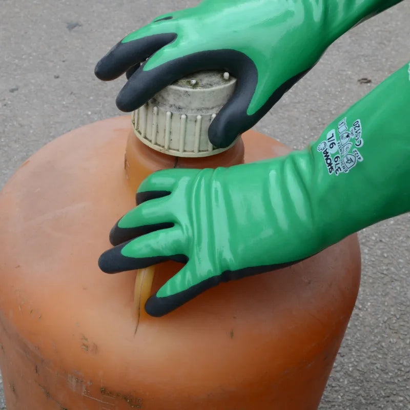A flexible, robust glove offering great dexterity & a good resistance to abrasion. Fully coated nitrile glove body with a nitrile foam palm providing excellent grip in wet & oily conditions whilst protecting from chemicals. The nitrile foam coating provides the grip & the flat nitrile base provides chemical resistance.
