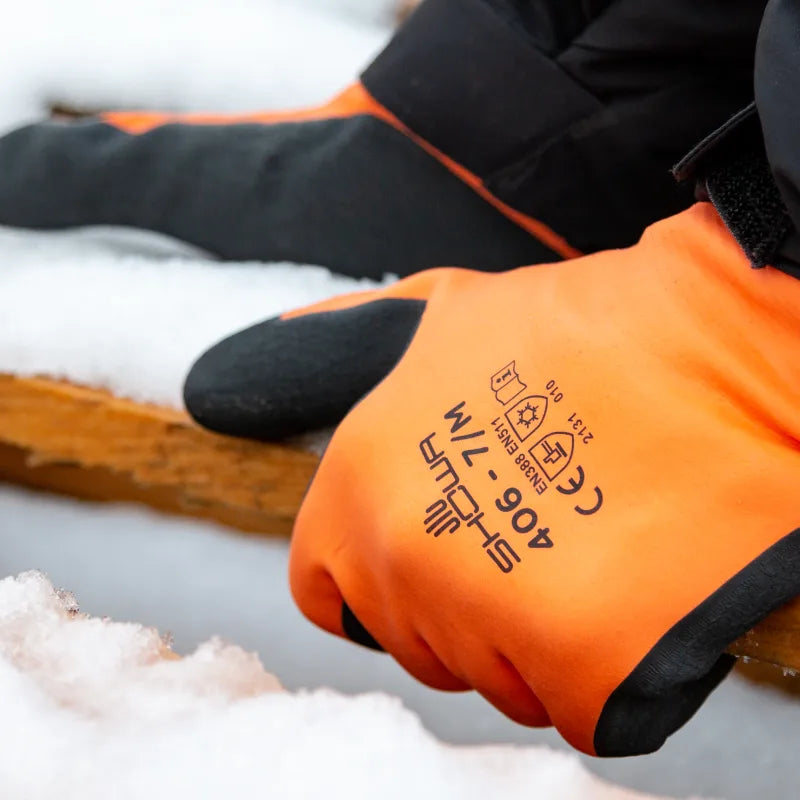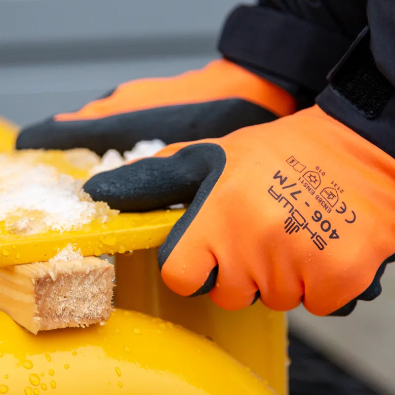 A durable, water repellent, insulated grip glove that is designed to protect down to -30°C for short or intermittent contact
