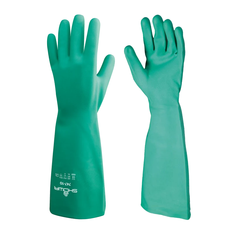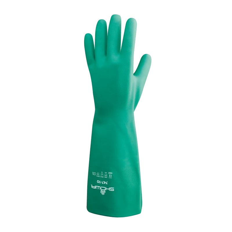 Made from a special SHOWA nitrile compound, the SHOWA 747 is a lightweight unsupported, gauntlet with an extended sleeve, that is resistant to a range of solvents, animal fats & other chemicals.