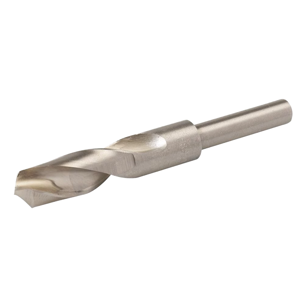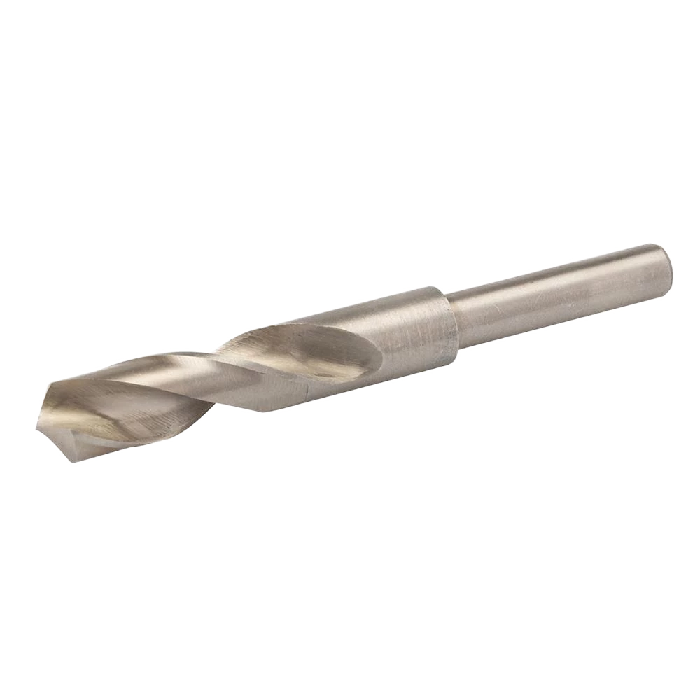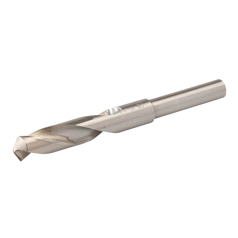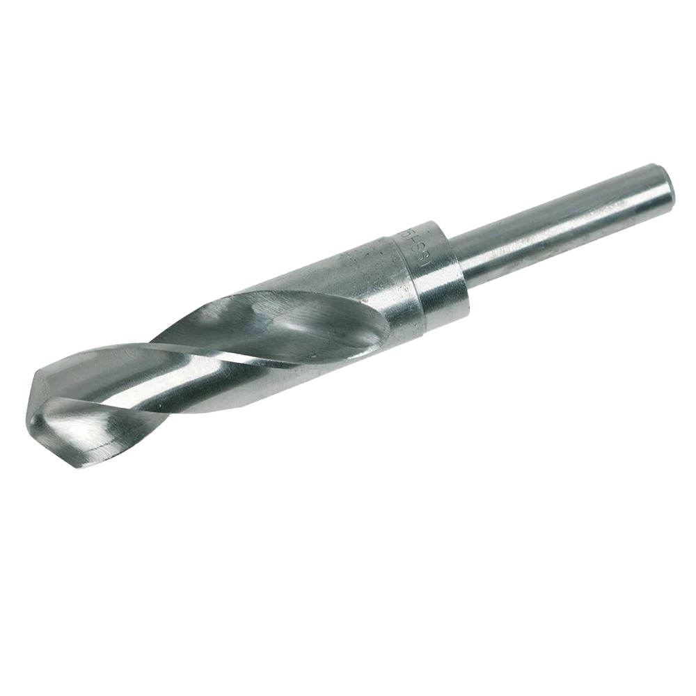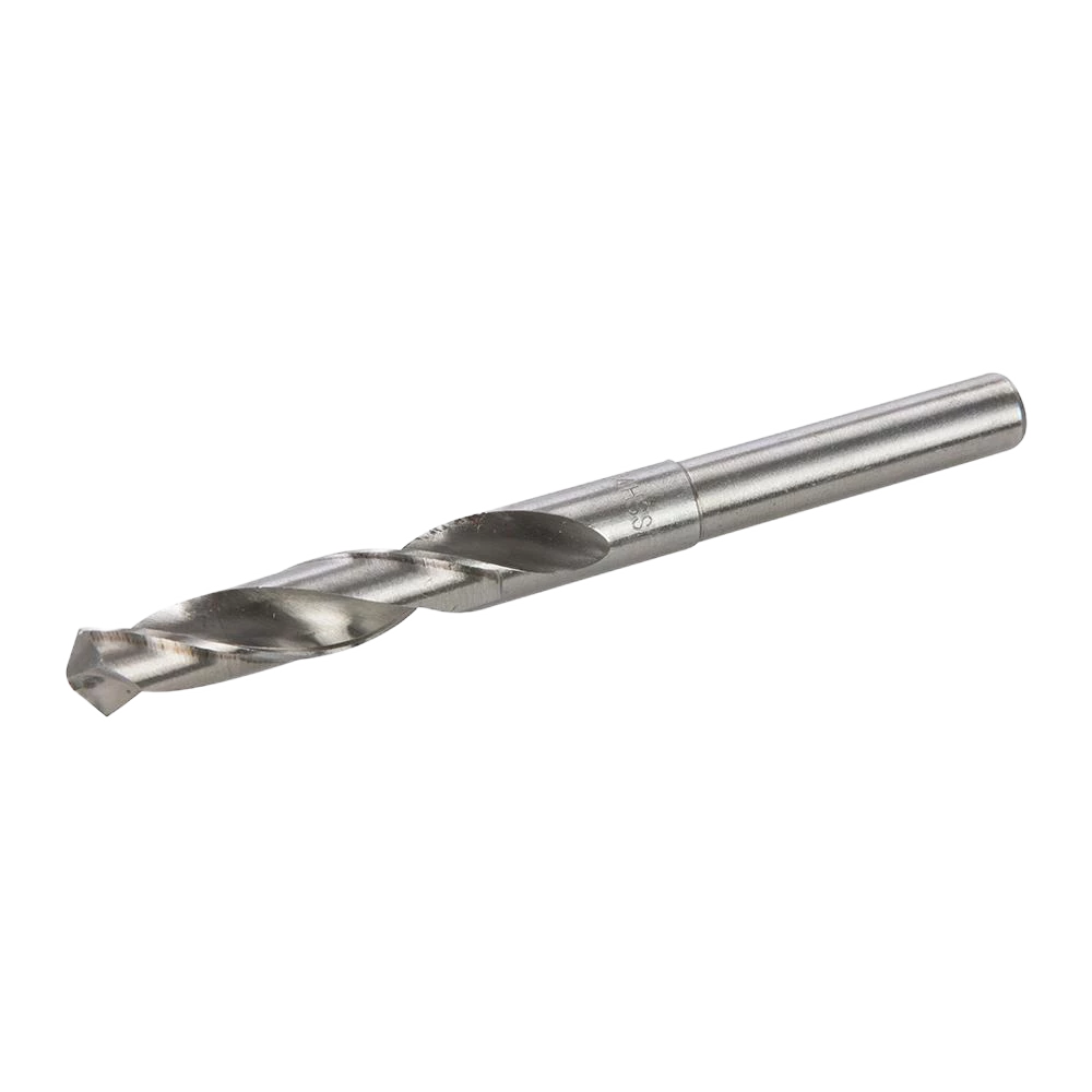 High carbon steel twist drill with high speed steel tip and polished, dry rust resistant coating. Large diameter bits with reduced 12.5mm diameter shank enables use with standard chucks. Use on aluminium, steel, plastic, wood and non-ferrous metals.