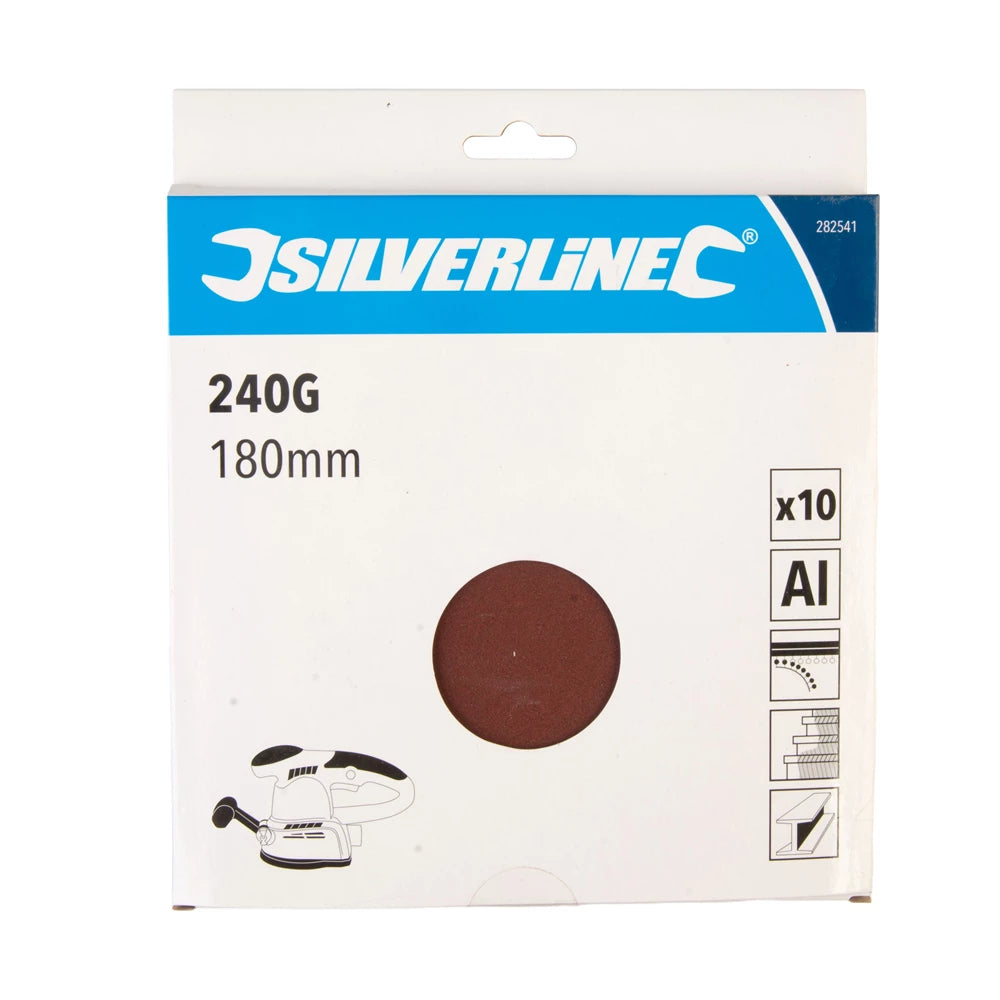 Silverline Hook & Loop Discs 180mm 10Pk - 240 Grit