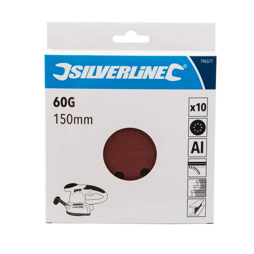 Silverline Hook & Loop Discs Punched 150mm 10Pk - 60 Grit