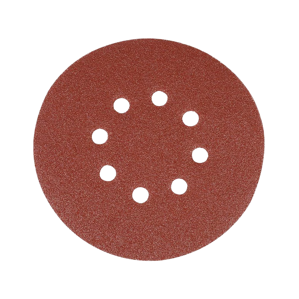 Aluminium oxide. 8 punched holes for dust extraction. Use with random orbit sanders for general purpose sanding.