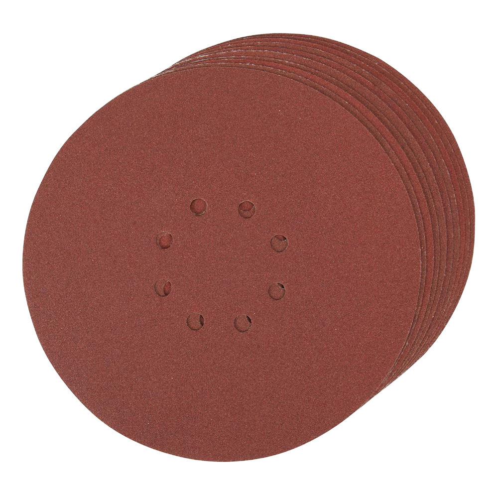 Aluminium oxide discs for general purpose sanding. 8 punched holes for dust extraction. Compatible with all 225mm hook and loop backing pads, and 225mm wall sanders.