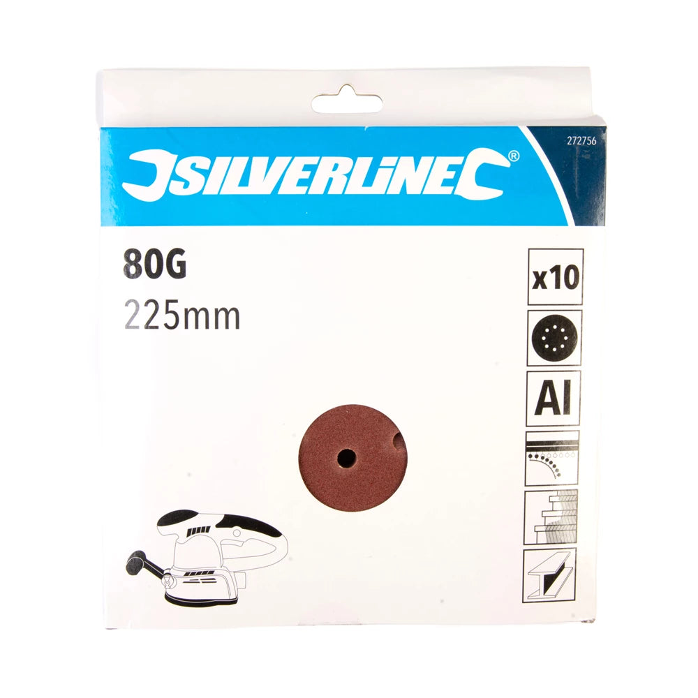 Silverline Hook & Loop Discs Punched 225mm 10Pk - 80 Grit
