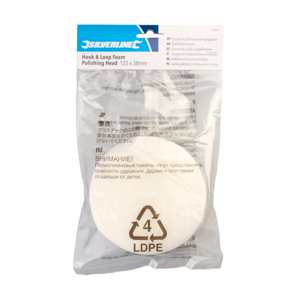 Polyurethane foam for polishing metal and glass. Ideal for automotive and marine applications. Compatible with 125mm hook and loop backing pads. Can be used with a polishing bonnet.