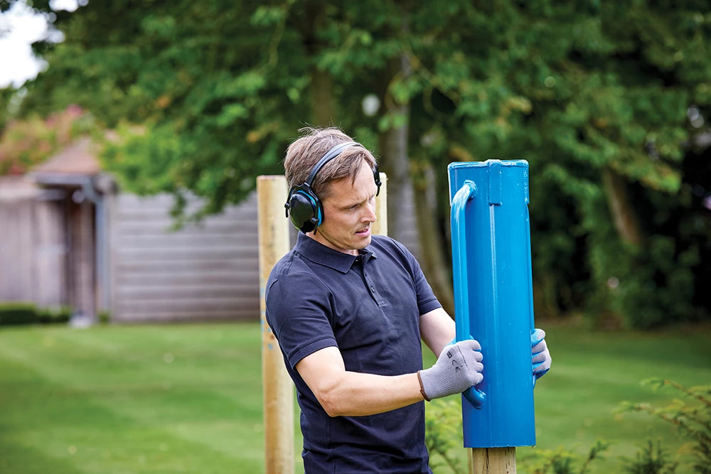 Tubular steel rammer for driving wooden posts deep into the ground. Can be used on either square or round posts. 670mm long, 350mm dia including handles with 170mm dia tube.