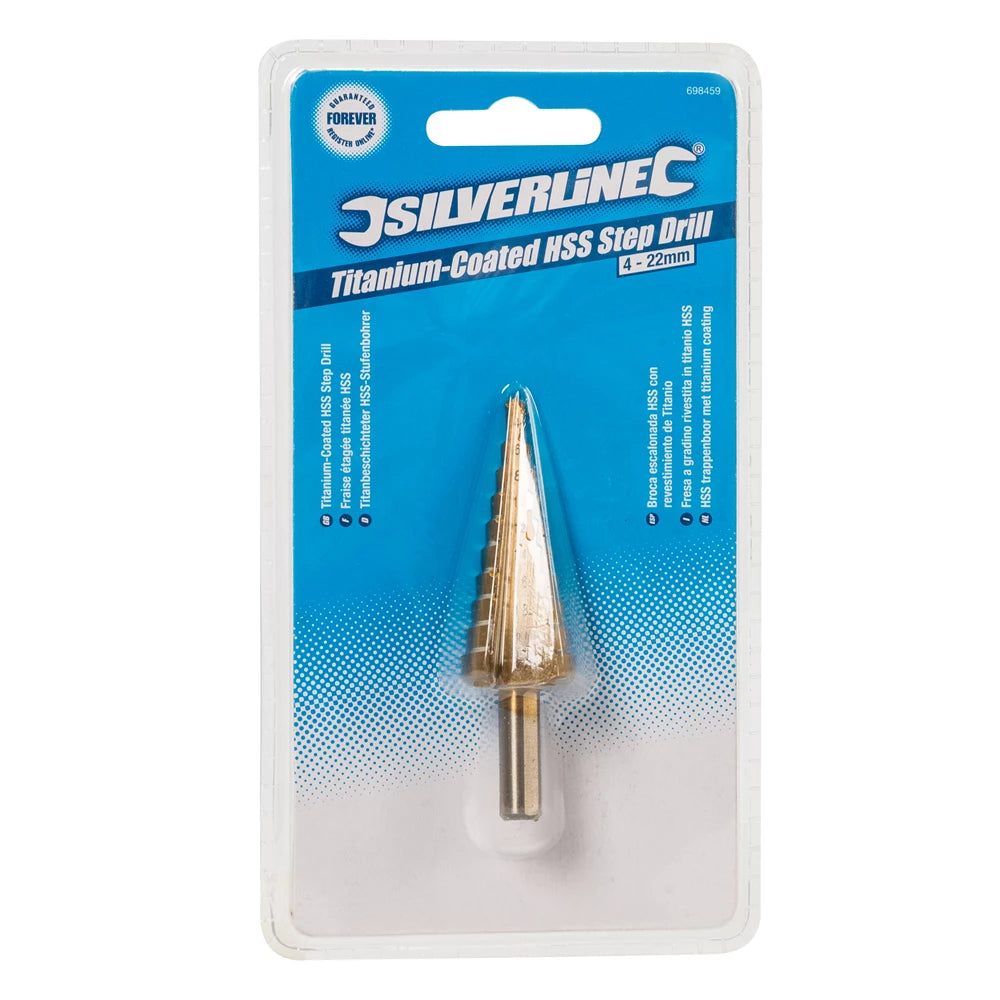 Self-starting step drill for precision drilling of sheet metals, alloys and plastics up to 4mm thick. Produces clean, accurate holes. Clearly marked 2mm graduations.