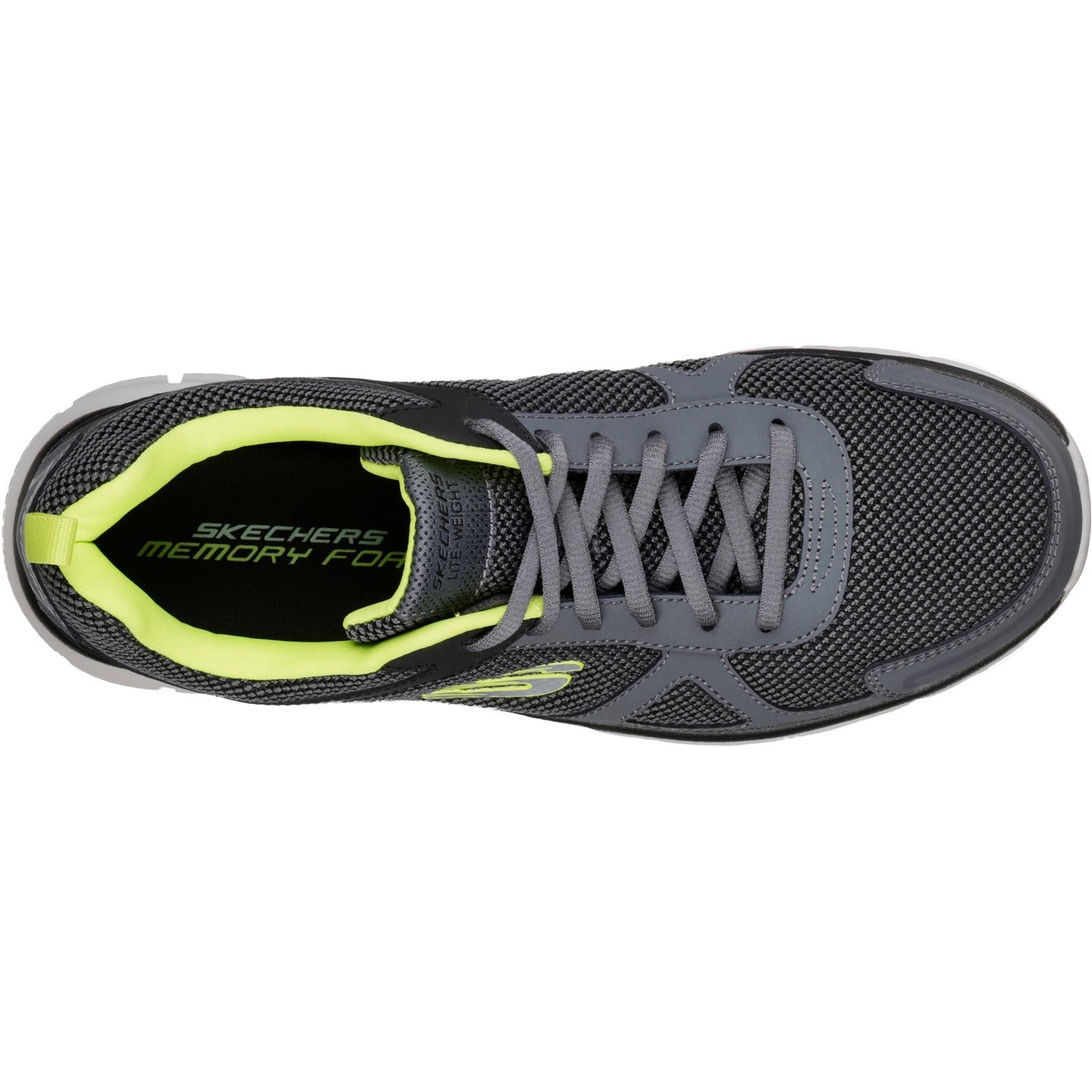 Add lightweight comfort and sporty style to your workout with the SKECHERS Track - Bucolo shoe. Smooth action leather and mesh fabric upper in a lace up athletic training sneaker with stitching and overlay accents. Memory Foam insole.